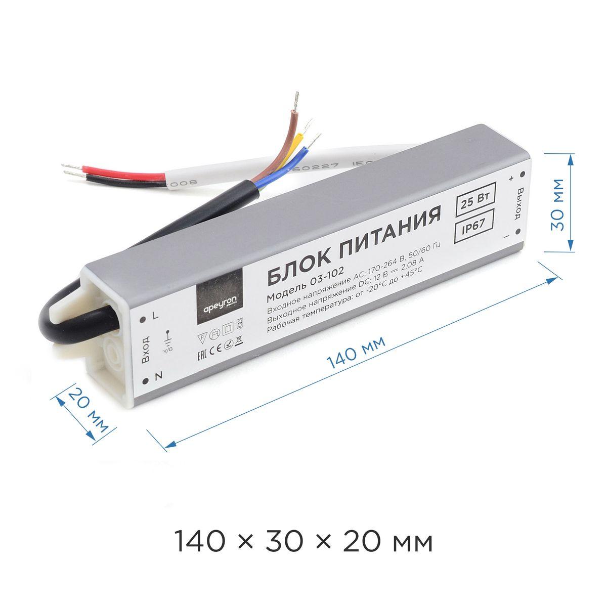 Купить "Блок питания Apeyron 12V 25W IP67 2,08A 03-102"
