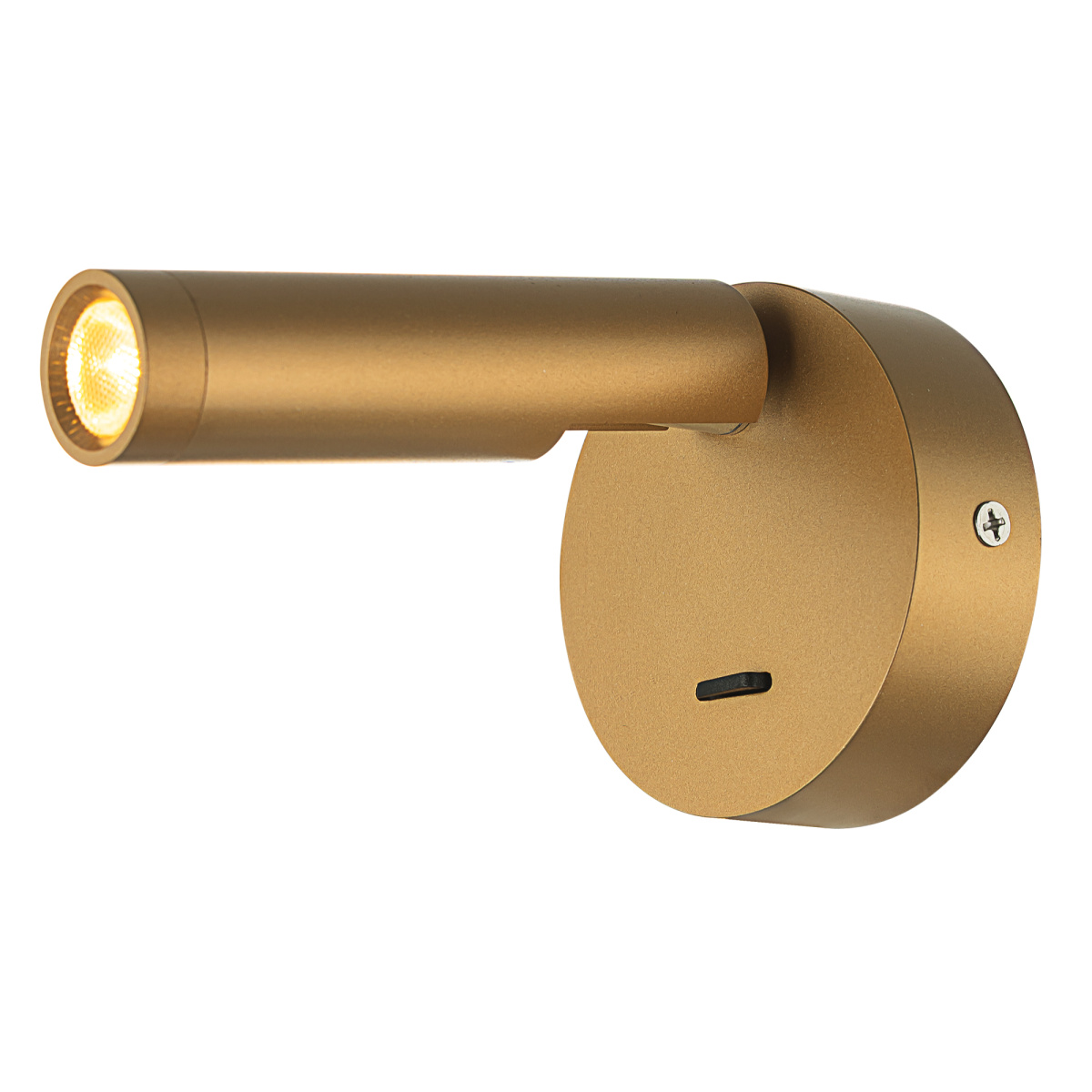 Каркас изделия — металлический, популярного золотистого оттенка, основание круглой формы, диаметром 78мм. LED-модуль цилиндрической формы, со встроенным светодиодом и рассеивателем из оптического полимера, имеет поворотное крепление, позволяющее регулировать направление светового потока.