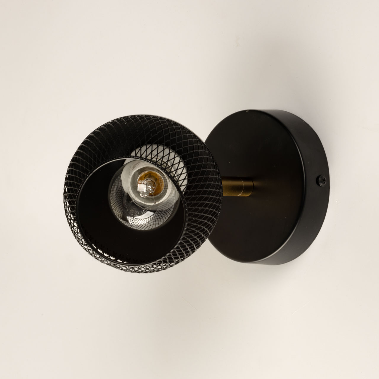Металлическое основание настенного бра и плафон окрашены в черный цвет. Отдельные элементы основания гальванизированы в цвет латуни.