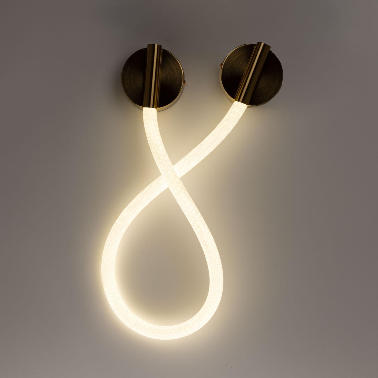 Металлическое основание бра гальванизировано в цвет латуни. Гибкий плафон настенного бра выполнен из белого матового силикона.