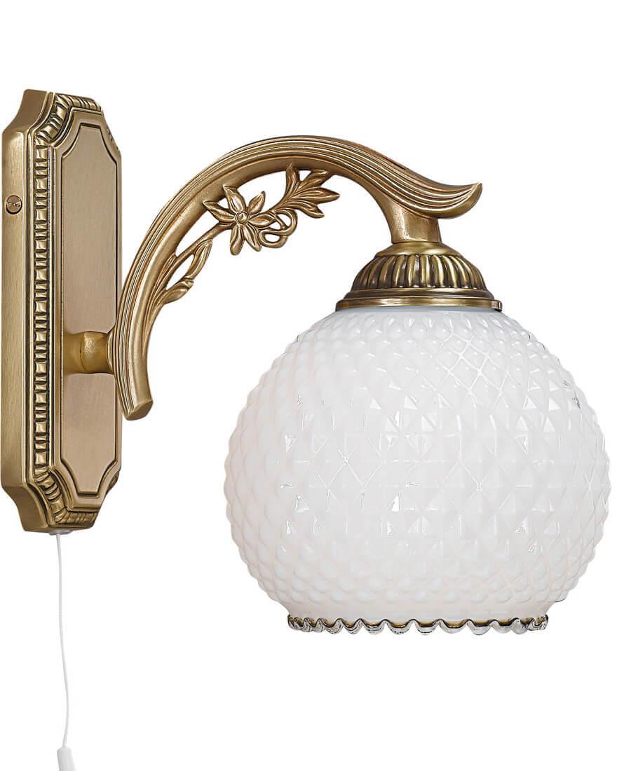 Бра Reccagni Angelo A 8600/1 Итальянского производсва – отличный выбор для Вас. Этот светильник Классического стиля хорошо подойдет Для гостиной и придаст помещению мягкий и приятный свет. Плафоны белые из стекла. Арматура бронза из металла. Кол-во ламп - 1шт. Общая мощность 60W