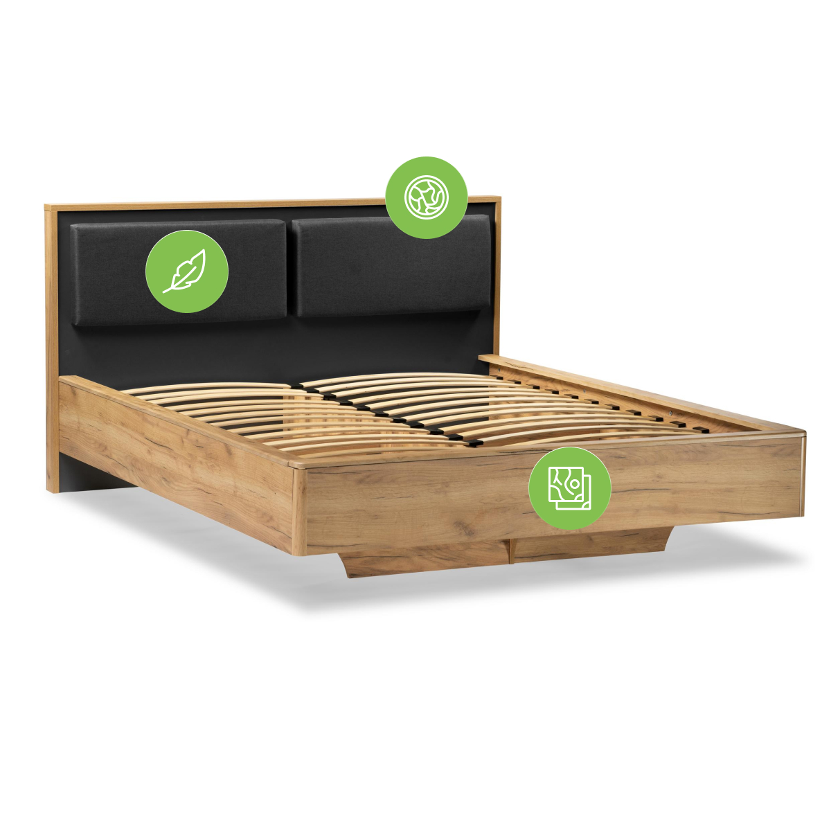 Купить "Двуспальная кровать 160х200 Woodville Клауд парящая дуб крафт золотой / антрацит 493037"