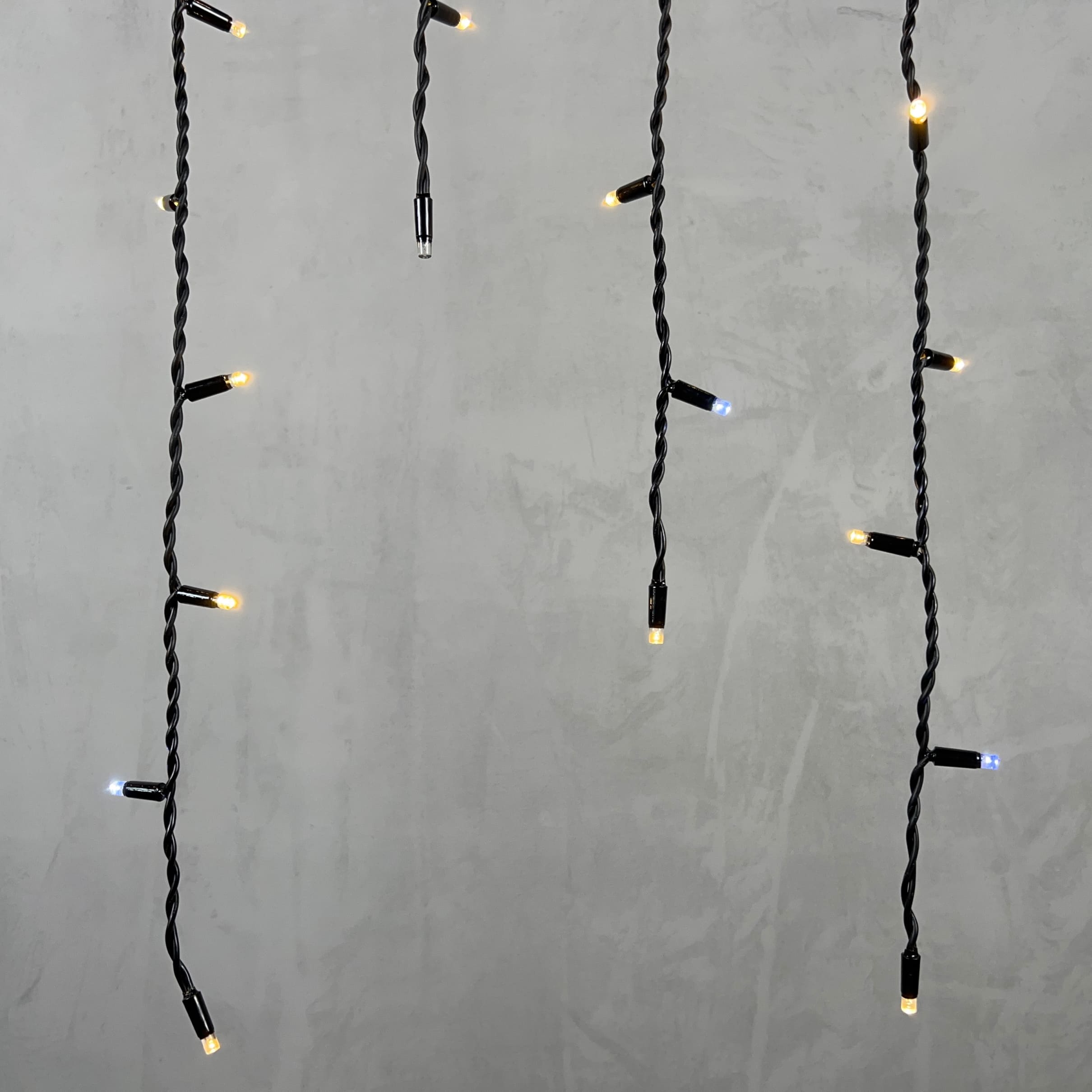 Купить "Гирлянда Бахрома 3,2 x 0,9 м Тепло-Белая с Мерцанием Белого Диода 220В, 168 LED, Провод Черный Каучук, IP65 LTC LL168BLW-1-2WW"