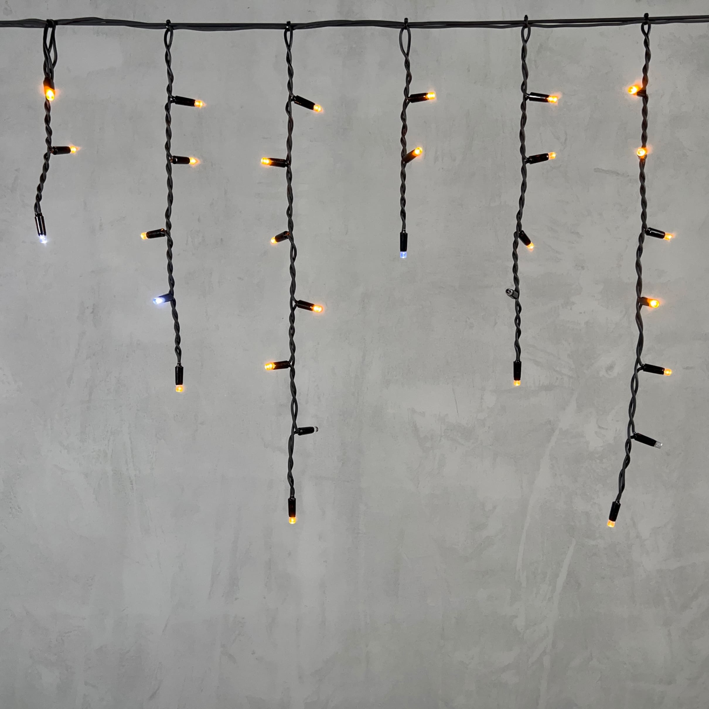 Гирлянда Бахрома 3, 1 x 0, 5 м Жёлтая с Мерцанием Белого Диода 220В, 120 LED, Провод Черный Каучук, IP65 LTC LL120BLW-1-2Y в Орле