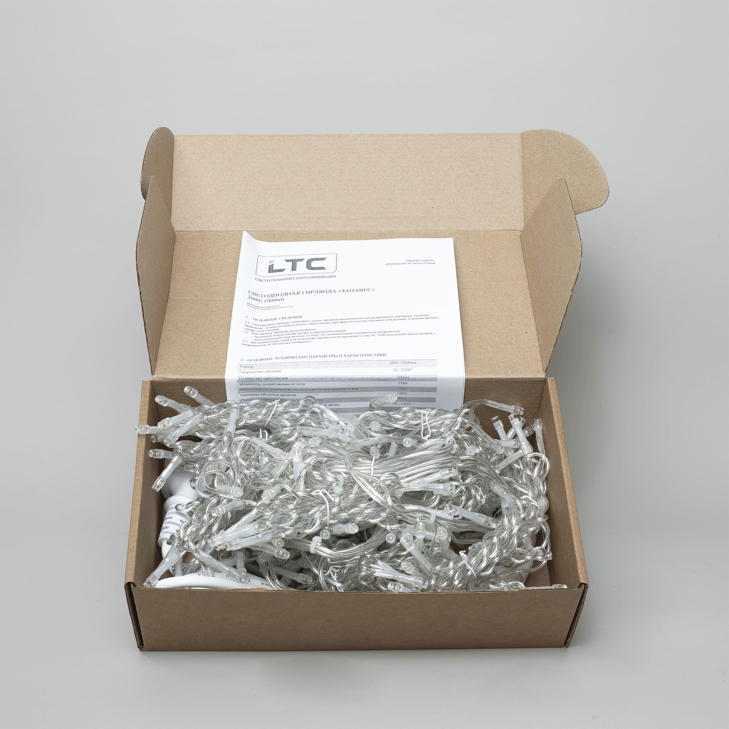 Гирлянда Занавес Облегченный 2 x 1 м Тепло-Белый 220В, 200 LED, Провод Прозрачный ПВХ, IP54 LTC PCL200NOT-10-2WW в Орле