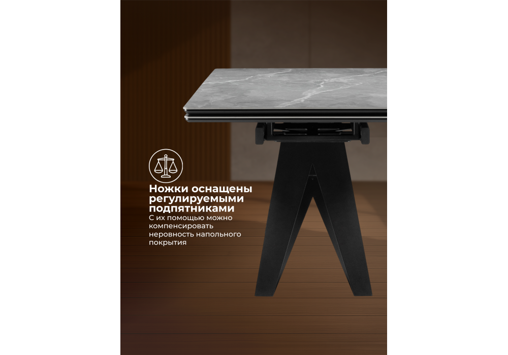 Керамический стол раздвижной Woodville Блэкберн 140(200)х80 серый мрамор larka grey / черный 625933 в Орле