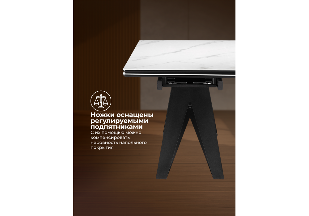 Керамический стол раздвижной Woodville Блэкберн 160(220)х89 белый мрамор snow white / черный 625943 в Орле