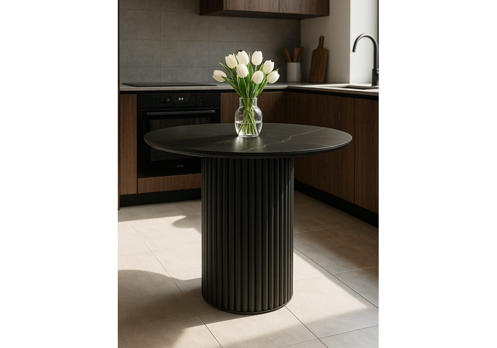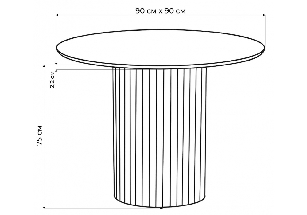 Материал каркаса - металл; Материал столешницы - Керамика; Цвет ножек - черный; Ширина - 90; Высота - 75; Длина - 90;