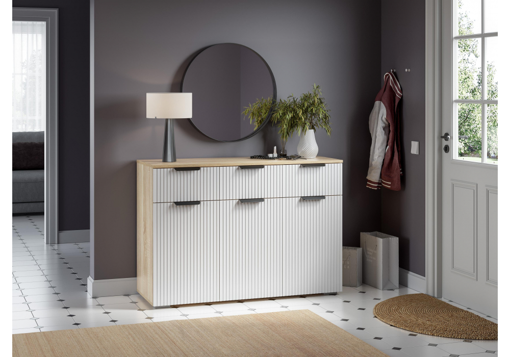 Купить "Комод Woodville Стокгольм дуб сонома / line софт пломбир 579686"