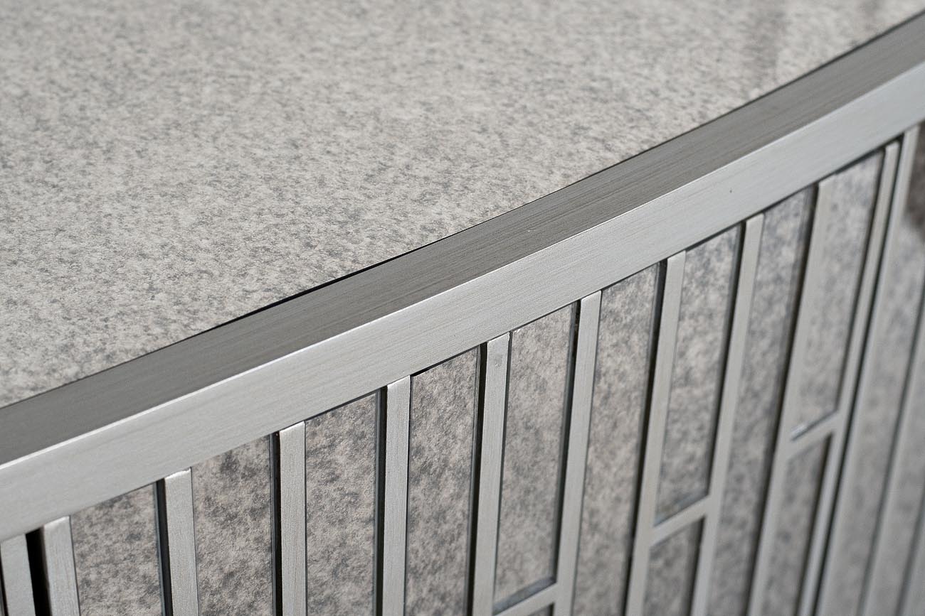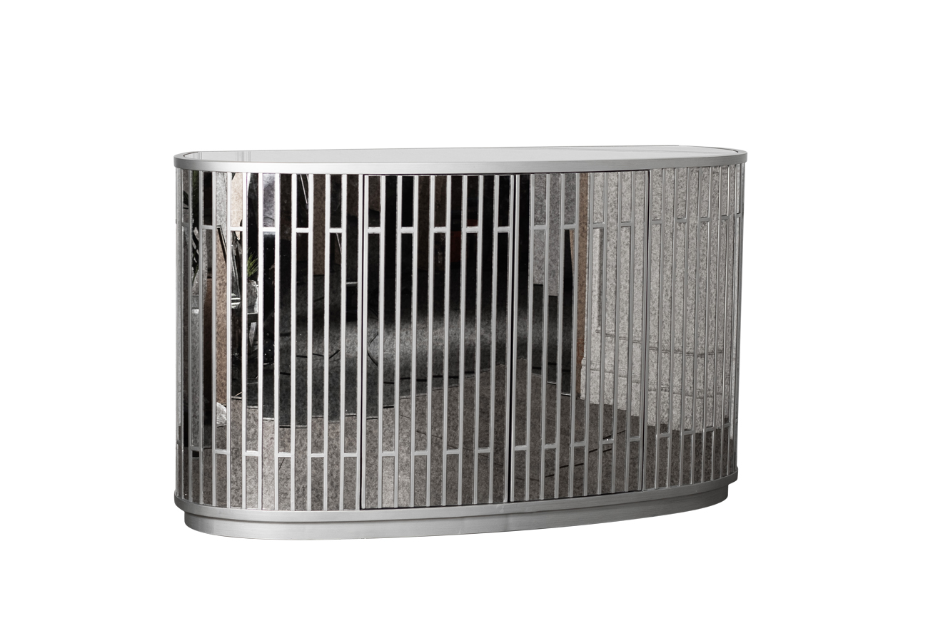 Необычайно изысканный и утонченный комод инкрустирован панелями из искусственно состаренного зеркала цвета silver antique и покрыт зеркальной столешницей того же оттенка. Все детали корпуса из дерева и МДФ серебристого цвета прокрашены и залакированы вручную в несколько слоев, что придает комоду особый шарм и обаяние. Две дверцы с механизмом push-to-open открывают доступ к внутреннему отделению с полкой. Зеркальная столешница может служить красивой подставкой для фоторамок, изысканных безделушек или туалетных принадлежностей. Комод прекрасно впишется даже в устоявшийся интерьер, дополнив меблировку изящной спальной или гостиной комнаты, а также элегантной прихожей. Комод гармонично дополнят тумбочка арт.KFG077 и консоль арт.KFG080 схожего дизайна.