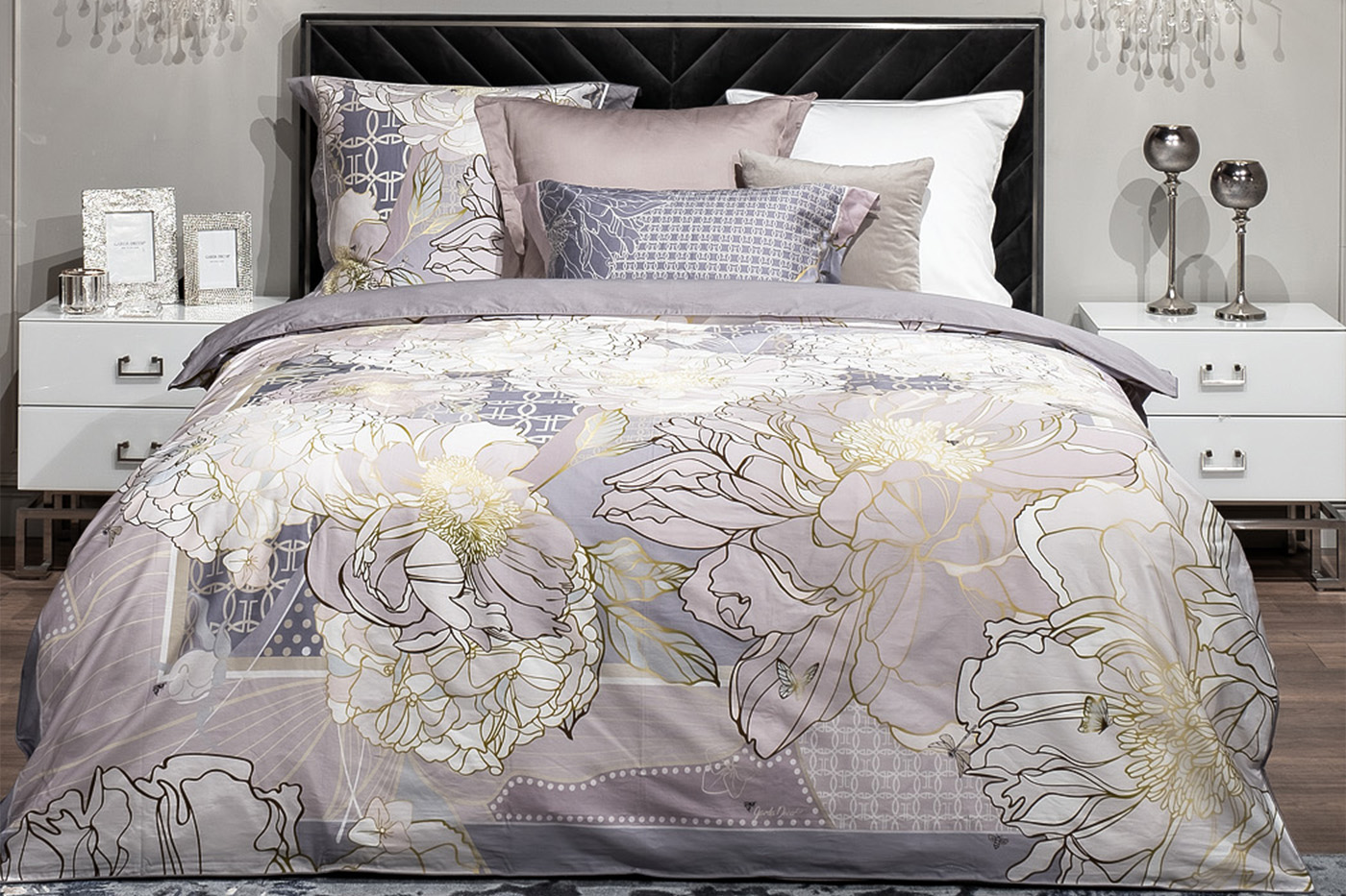 Купить "Комплект наволочек сатин принт Пионы серый 70*70 Garda Decor 130HB-00029"