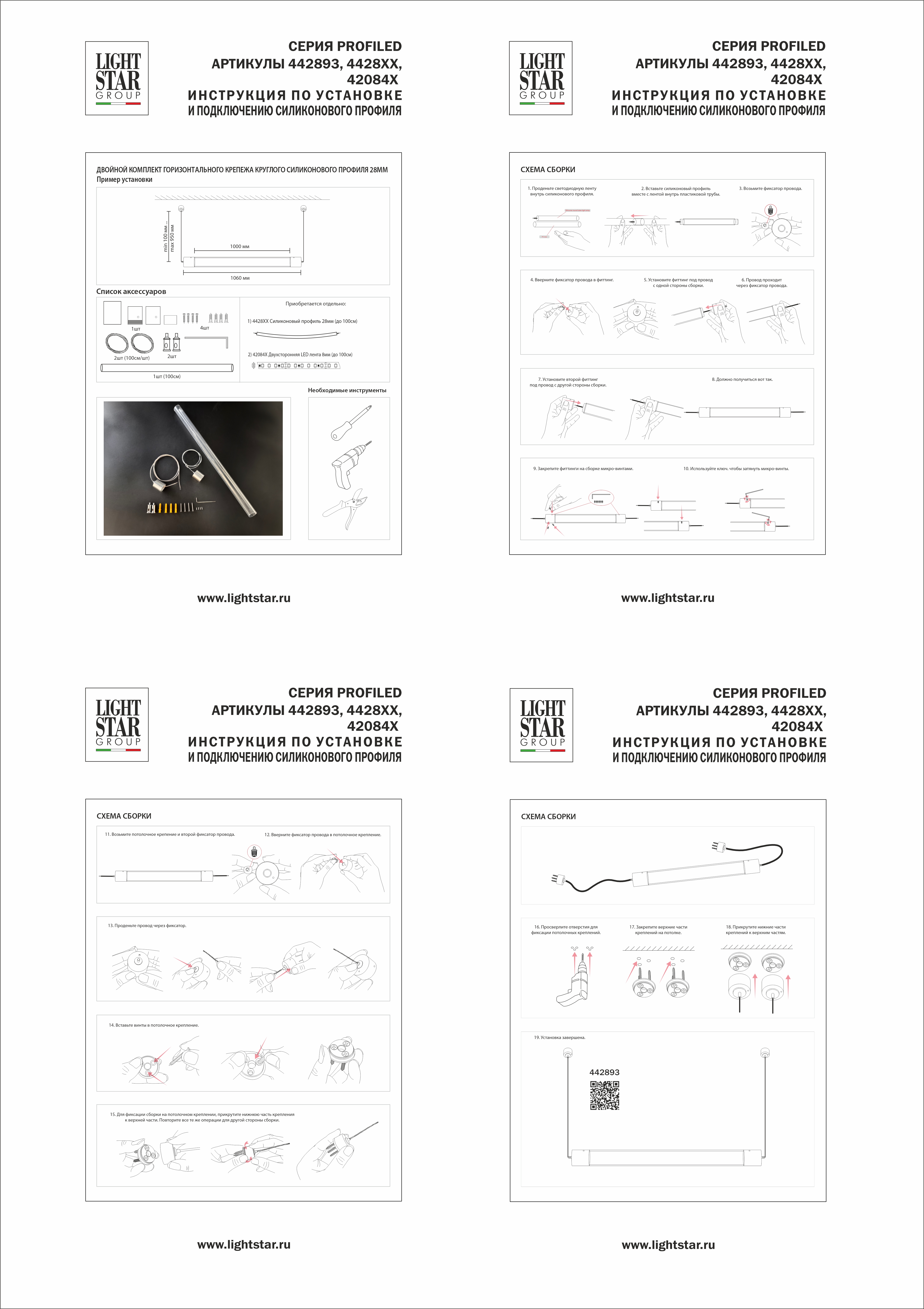 Купить "Комплект подвесного гориз крепежа двойной с трубкой Lightstar Profiled 442893"