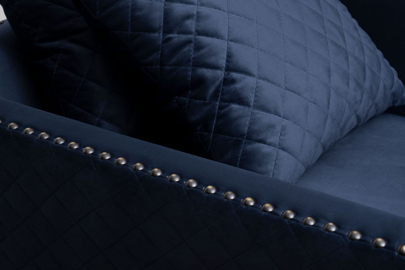 Шикарное темно-синее кресло SORRENTO способно повысить статус своих владельцев и придать помещению аристократичности. В эту модель дизайнеры вложили максимум роскошества и шика: велюровая обивка, бронзовые колесики оригинальной формы, каркас из дерева и декор из гвоздей из состаренной бронзы. Используйте велюровое кресло для дополнения гостиной, рабочего кабинета или спальни. Для повышения комфорта во время отдыха, изделие дополнено мягкими подушками с эффектной прострочкой. Компания Garda Decor предлагает кресло на заказ в Москве с доставкой. Высота спинки (габаритная с подушками) - 88см.
