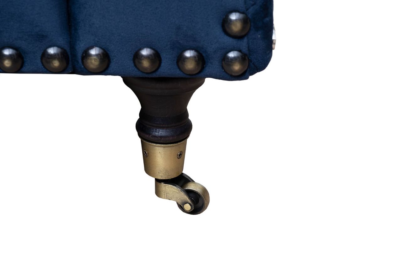 В стандартном исполнении: обивка - велюр из коллекции Garda Decor -Colt034 SIN, цвет ножек - 4, колесная опора - бронза, гвозди - состаренная бронза большие.