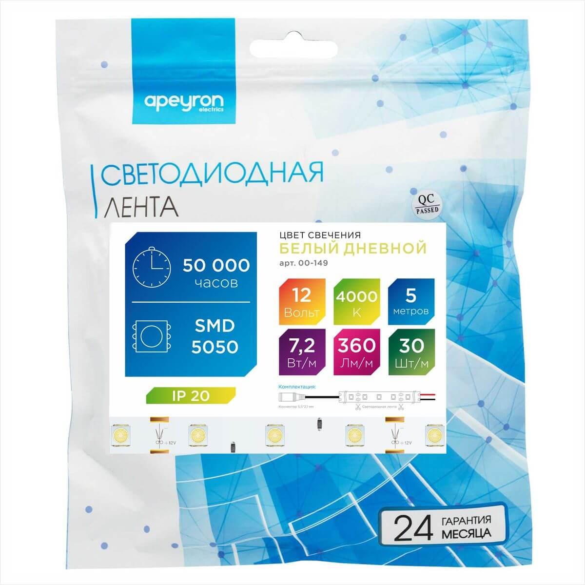 Лента Apeyron 7, 2W/m 30Led/m 5050SMD дневной белый 5M 00-149 в Орле