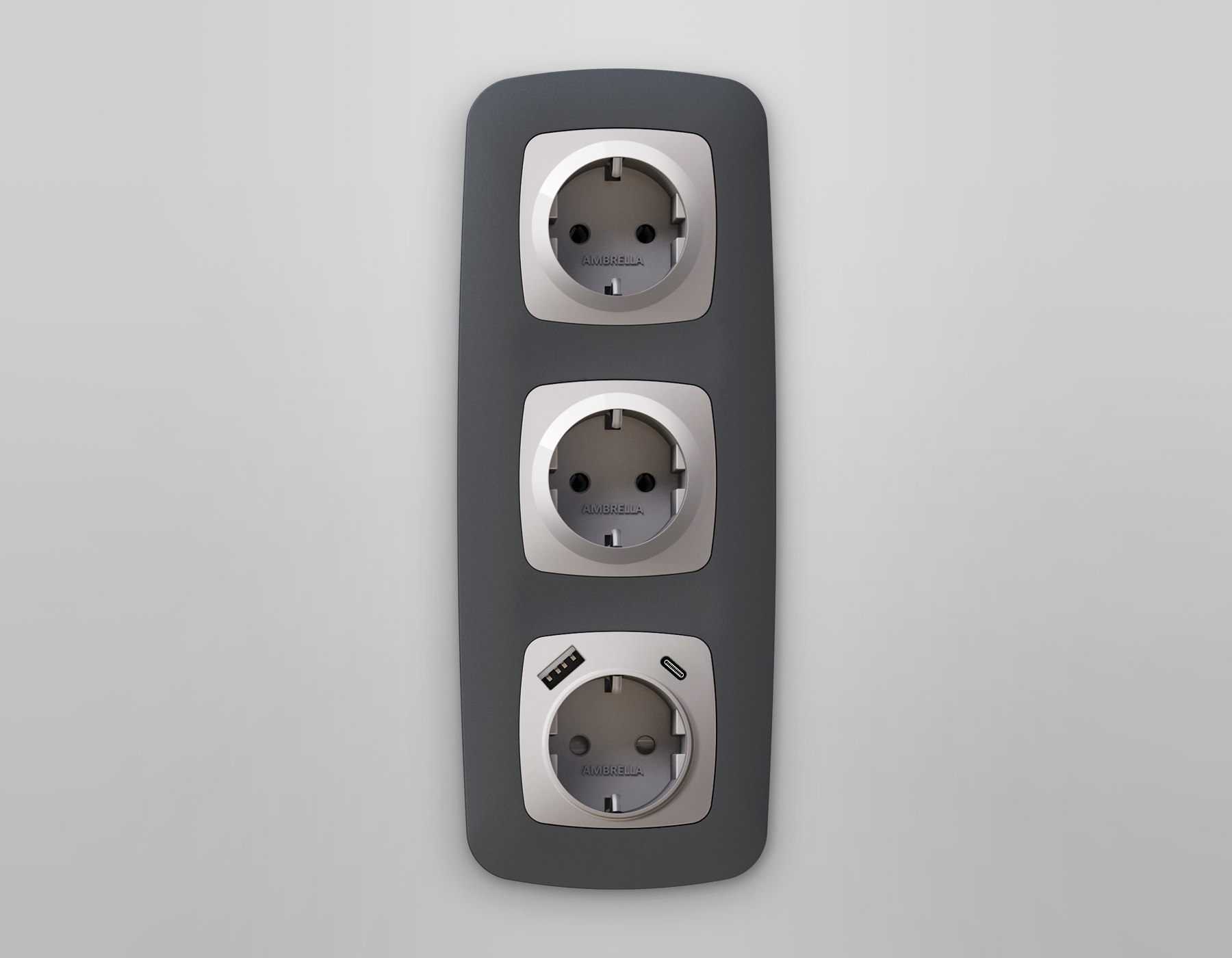 Купить "Лицевая панель для розетки с заземлением со шторками 2USB A+C Ambrella Volt Quant OMEGA OP4100"