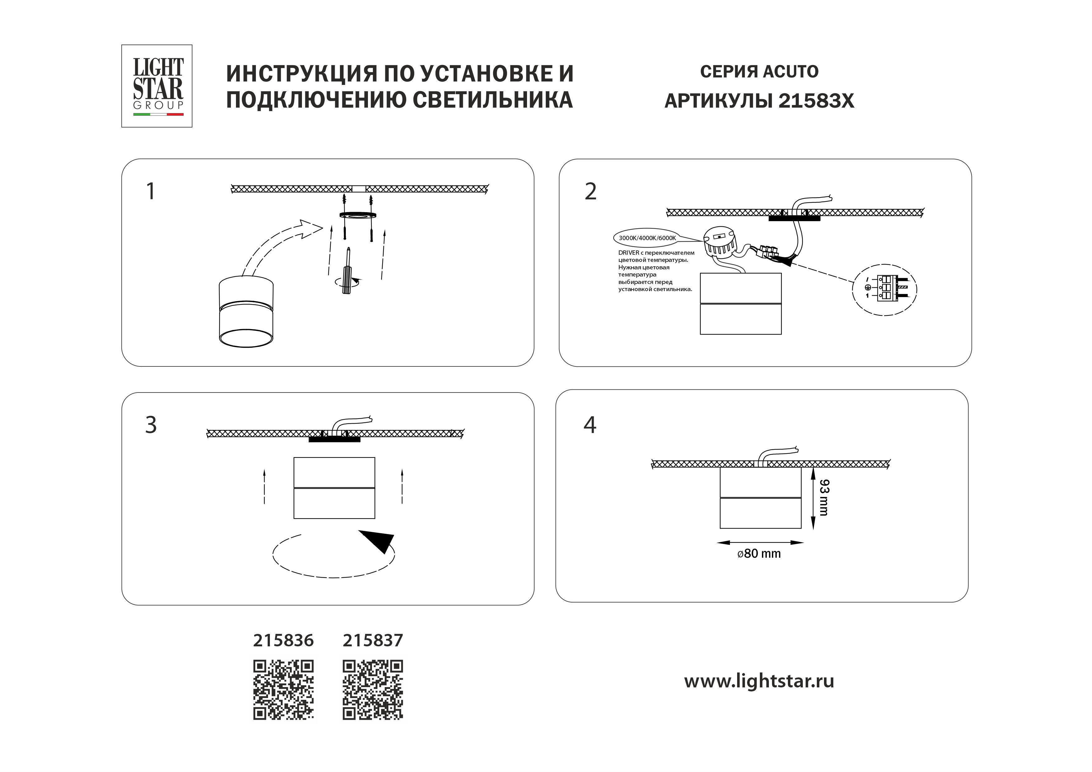 Накладной светодиодный светильник с переключателем света Lightstar Acuto 215837 в Орле