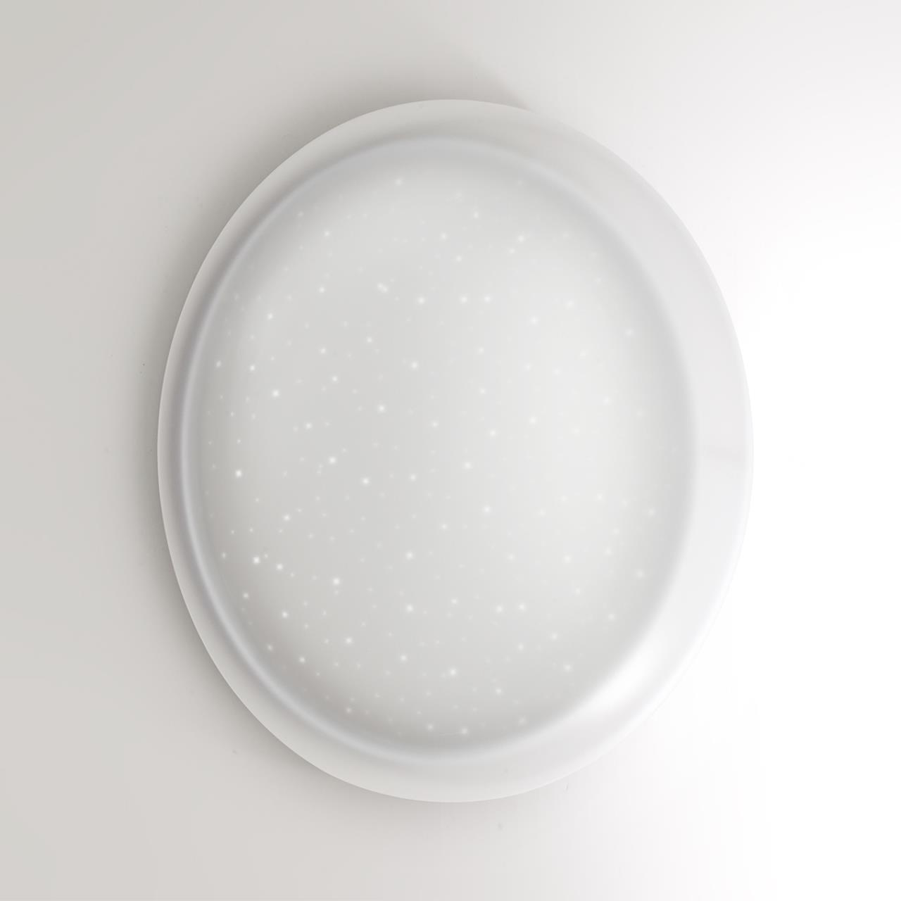 Светильник 7774/DLN линии JOLLY состоит из металлического основания (базы) и пластикового рассеивателя. Материал рассеивателя - высококачественный акрил белого цвета с глянцевой поверхностью, обеспечивающий светильнику равномерное рассеивание и хорошее светопропускание. Форма плафона: круглая, декорирована прозрачными точками, придающими включенному светильнику красивый эффект "звездного мерцания" и переливания. Степень защиты IP43 позволяет использовать светильник в определенных зонах влажных помещений. В комплект входит LED модуль с линзами, мощностью 48Вт, которая соответствует лампе накаливания 515Вт. А также переключатель температуры цвета (ССT) на драйвере, с помощью которого осуществляется изменение цветовой температуры 3000/4000/6000К и переход светильника в режим теплого/белого/холодного света. Для установки необходимого режима рекомендуется использовать удлиненный тонкий предмет типа небольшой отвертки. Данную модель 7774/DLN с быстрой доставкой спешите купить в магазине 220svet.ru