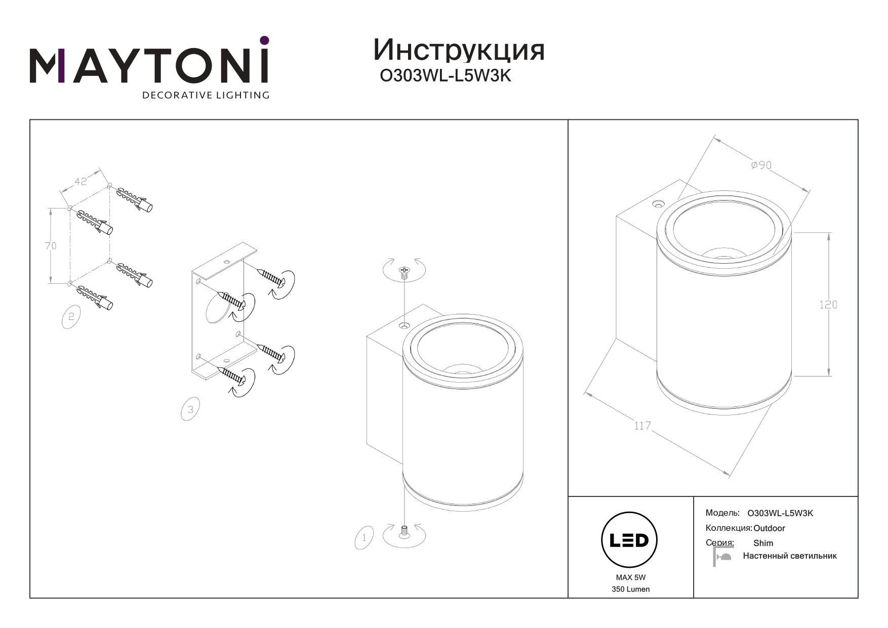 Все характеристики O303WL-L5W3K