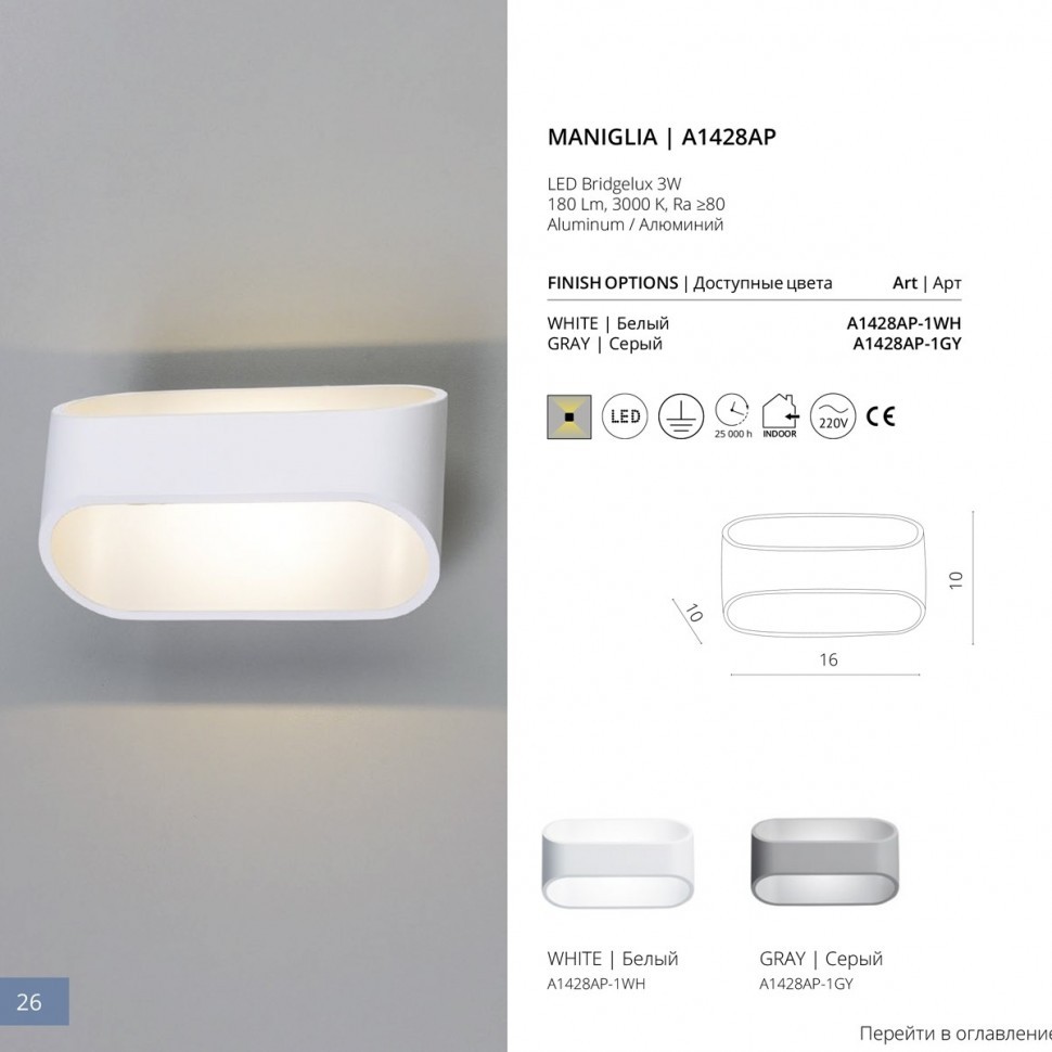 Настенный светодиодный светильник Arte Lamp A1428AP-1GY в Орле