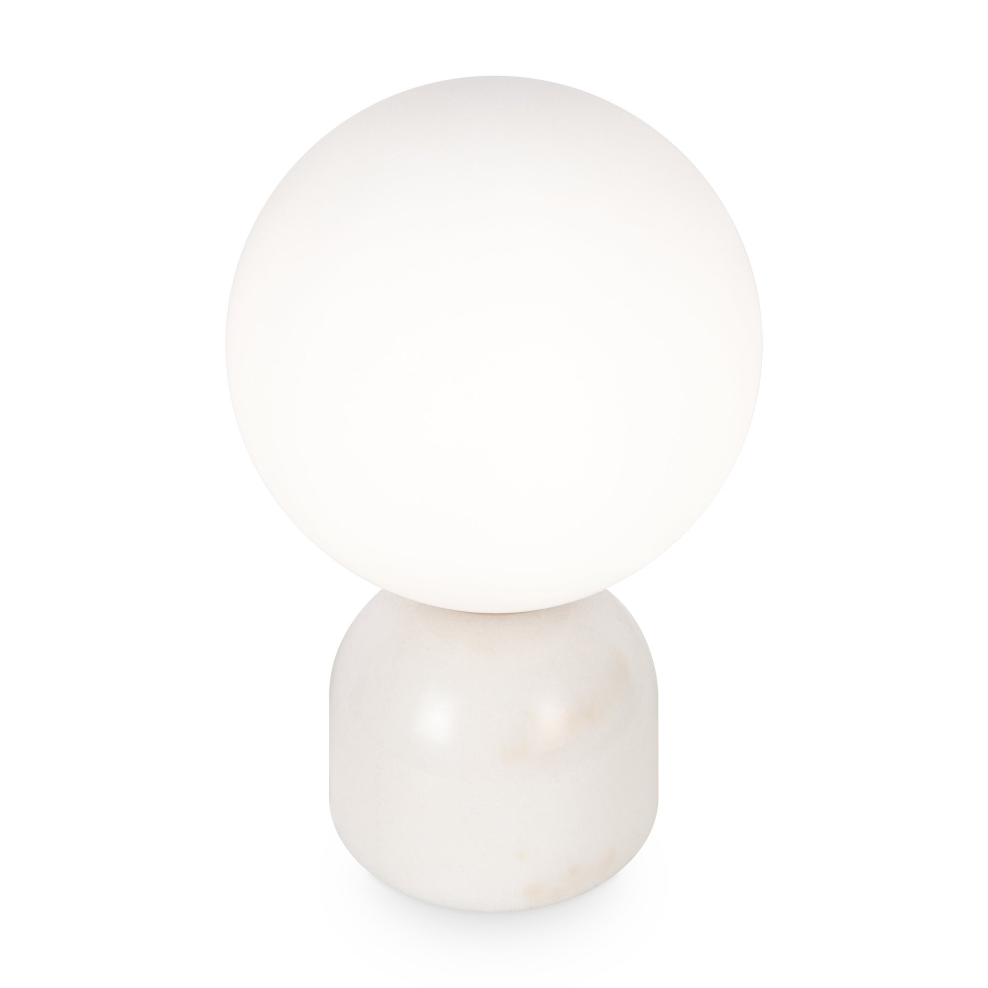 Материал основания — натуральный мрамор с уникальным рисунком. Цвета — белый, черный. Шаровидный плафон. Функция touch-dimming позволяет регулировать яркость света. Источник света — лампа с цоколем E14.