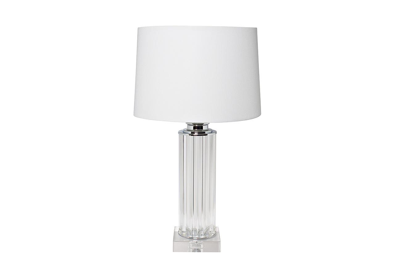 Настольная лампа с белым абажуром изготовлена из прозрачного стекла и хромированного металла. Прозрачная ножка смотрится лаконично и стильно, а абажур светло-серого цвета обеспечивает уют любой комнате. Свет настольной лампы оказывает расслабляющий эффект...