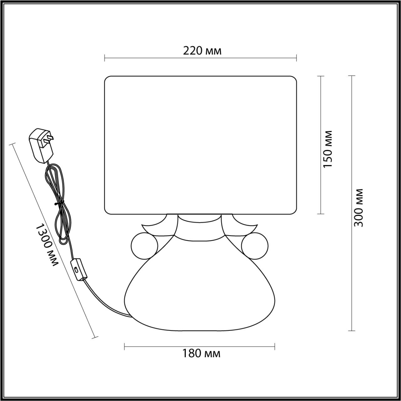 - Диаметр плафона (абажура): 220