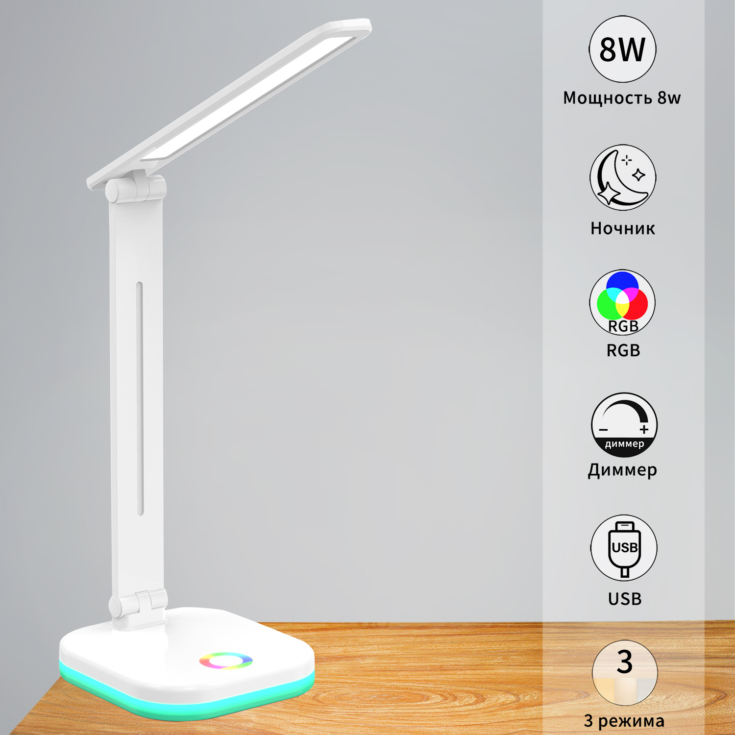- Цвет свечения: RGB