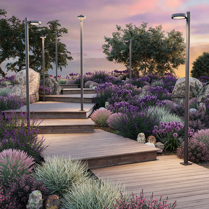 Прочный алюминиевый корпус темно-графитового цвета. Предназначен для уличного использования в парках, скверах, на площадках для отдыха. Минималистичный плафон круглой формы. Высота столба 4 м (в комплект не входит). LED-источник света. Цветовая температура 3000К. Максимальная защита от пыли и влаги IP65. Мощность 50 Вт.