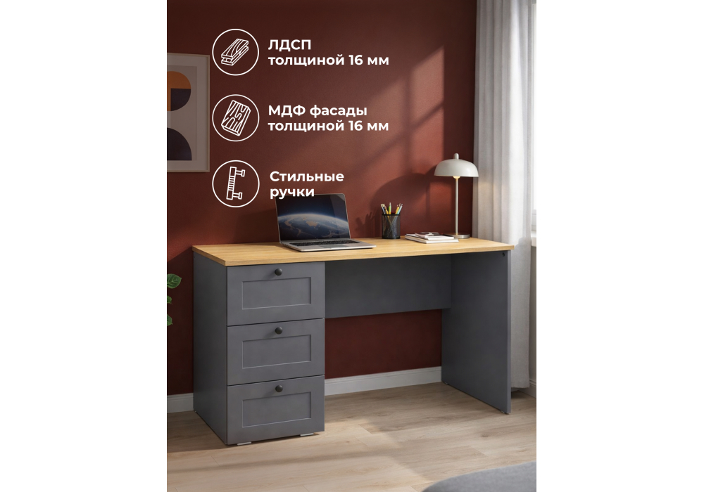 Письменный стол Woodville Опра серый графит / дуб золотой craft 676811 в Орле