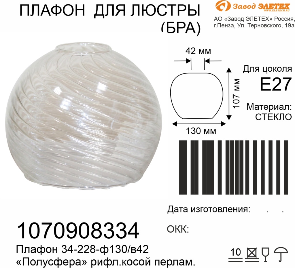 Абажуры ЭЛЕТЕХ 1070908334 Прозрачные в Орле