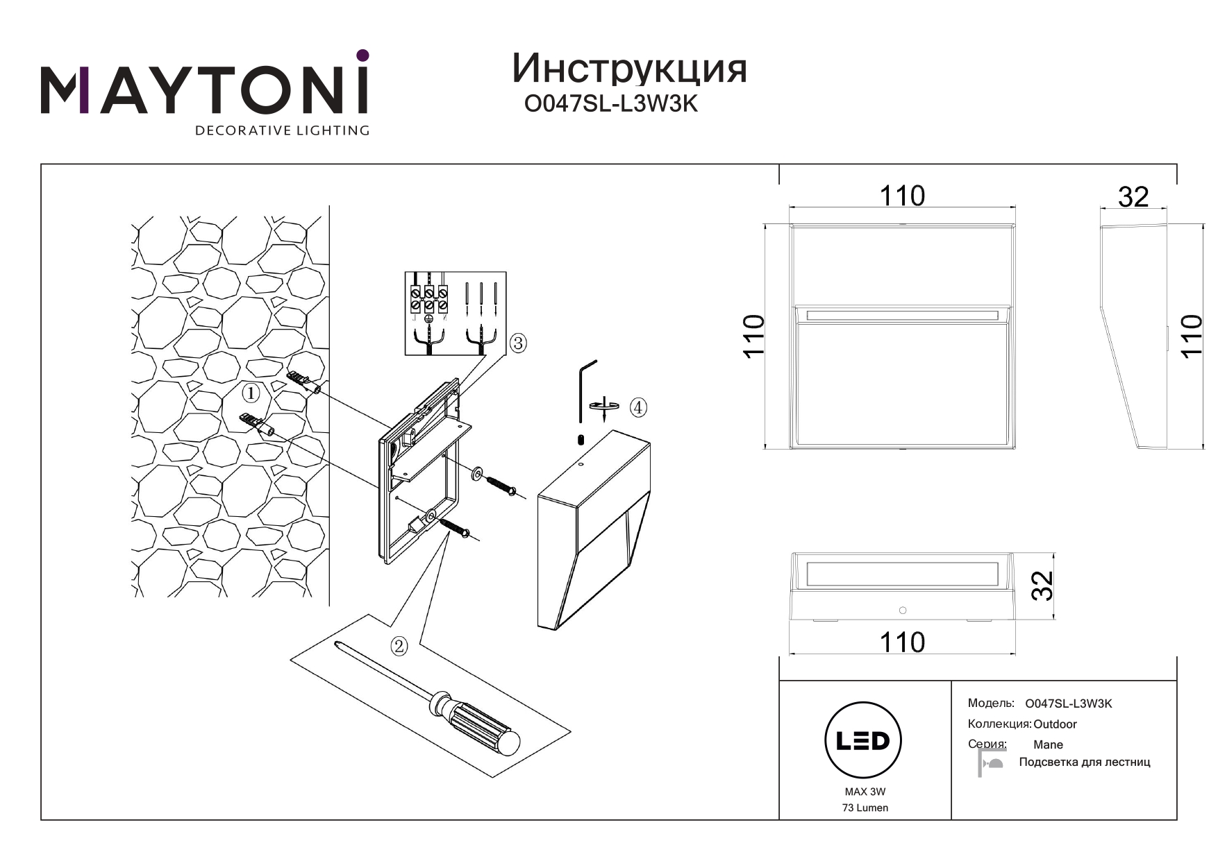 Подсветка для лестниц Maytoni Mane O047SL-L3W3K в Орле