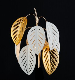 Металлическая арматура, покрытая хромом, изящно контрастирует с керамическимими дополнениями в виде листочков, также в цвете хром и белом цвете. Каждый элемент люстры продуман до мелочей, что делает ее не просто освещением, а акцентом в интерьере, богатом на детали и шарм. Позвольте этой люстре наполнить ваш дом светом и элегантностью, сочетая в себе традиции и современность.