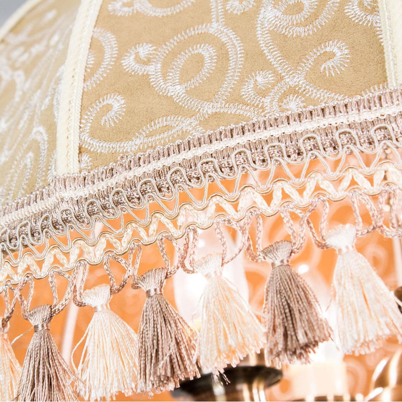 Подвесная пятирожковая люстра на цепи Citilux Базель CL407155 с классическим абажуром. Корпус светильника металлический, цвет бронза. Абажур тканевый, цвета капучино, украшен изящной вышивкой и декорирован бахромой. Модель подойдёт для освещения уютной гостиной, кухни или веранды в загородном доме или на даче. Поможет создать комфортную атмосферу в кафе и ресторане, великолепно выглядит над столом. Подходит для всех типов потолков, в том числе натяжных, тип крепления – крючок. В изделии используются лампы с цоколем Е14, максимальной мощностью для ламп накаливания 60Вт, светодиодные лампы можно устанавливать более яркие. Высота регулируется от 50 до 135см, диаметр 51см, осветит около 14м².