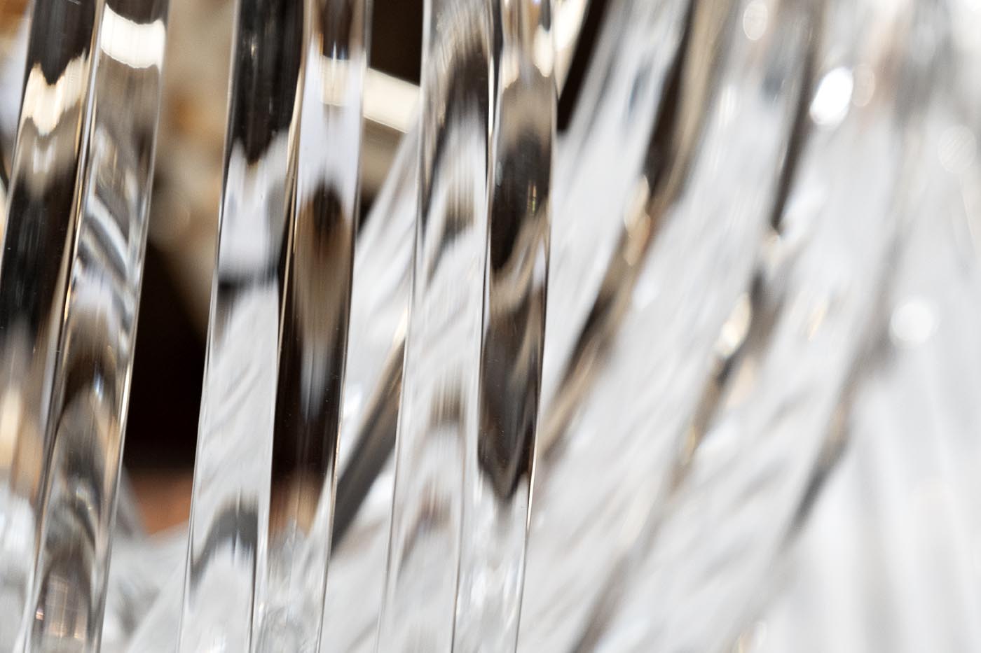Дизайнерский светильник привлекает внимание своей сложной формой. Переплетение элементов создает красивую игру света. Благодаря плавным линиям и изящной конструкции такие стеклянные люстры подходят как для классических, так и для современных интерьеров. Это оптимальное решение для холла, столовой или гостиной в доме с высокими потолками. Рекомендованная площадь освещения 12-16 м2