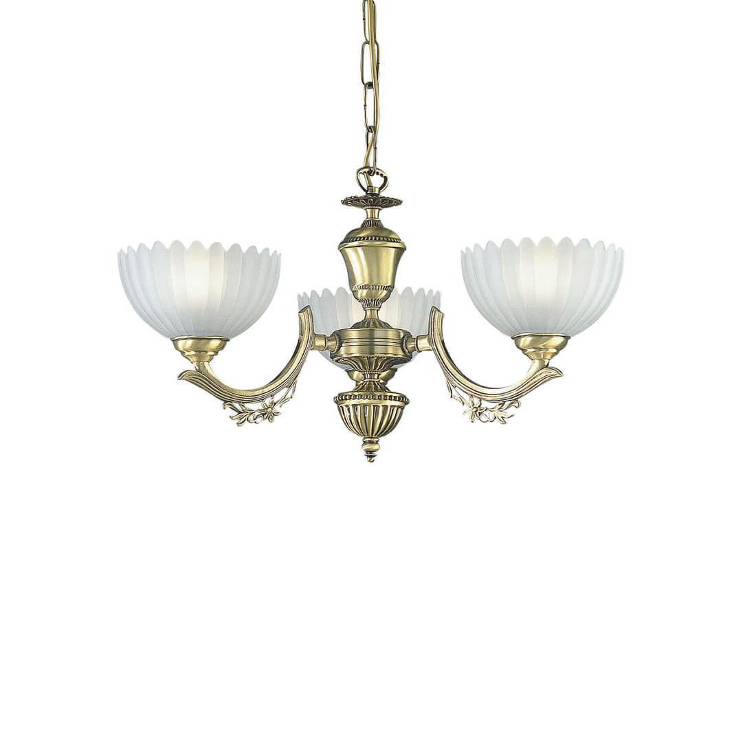 Подвесная люстра Reccagni Angelo L 2825/3 Итальянского производсва – уникальное сочетание высокого качества и удивительных фактур. Этот светильник Классического стиля хорошо подойдет Для спальни и придаст помещению мягкий и приятный свет. Плафоны белые из стекла. Арматура бронза из металла. Кол-во ламп - 3шт. Общая мощность 180W