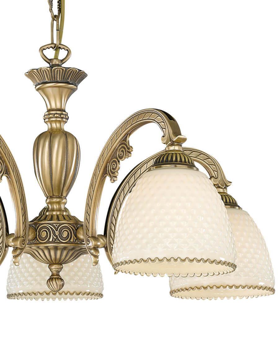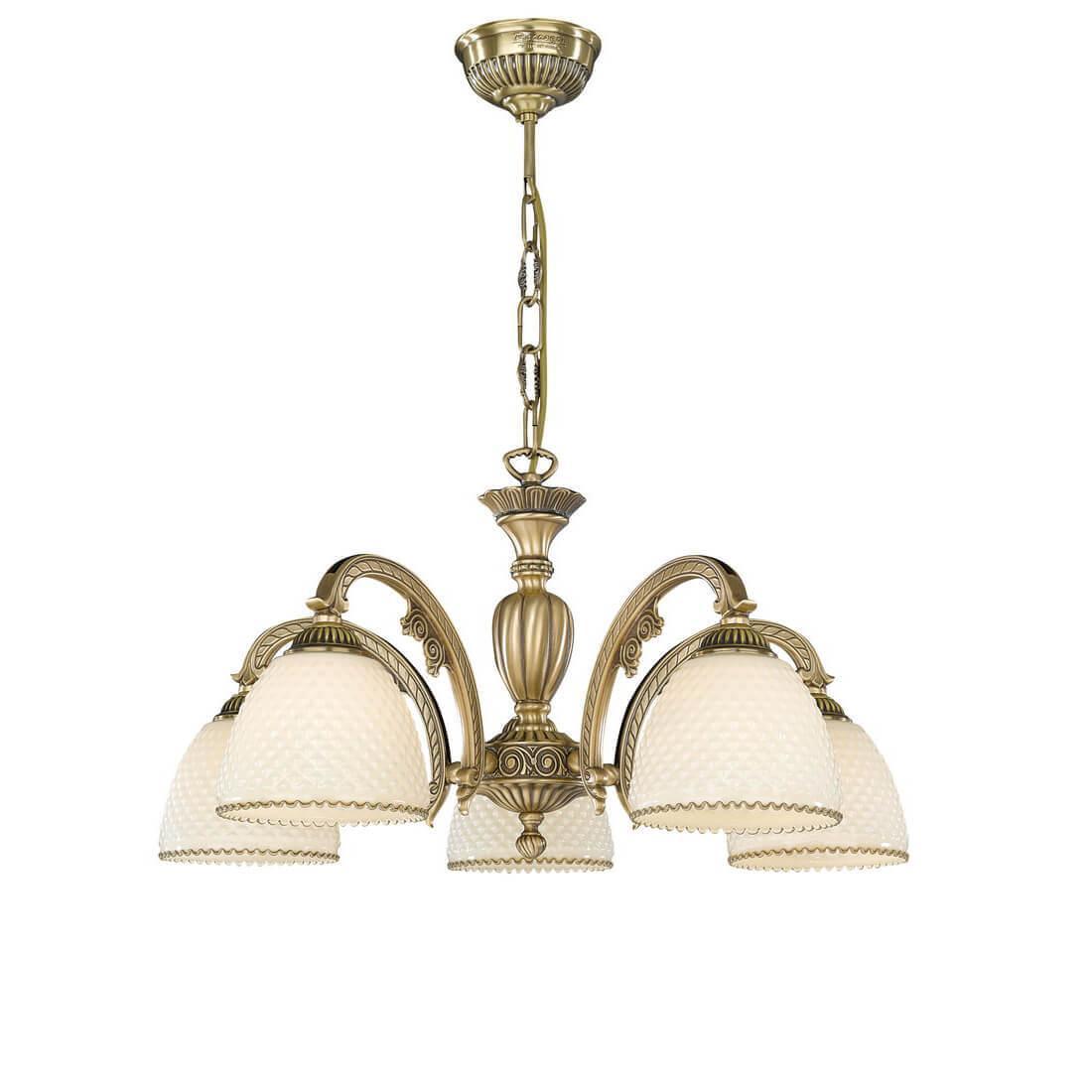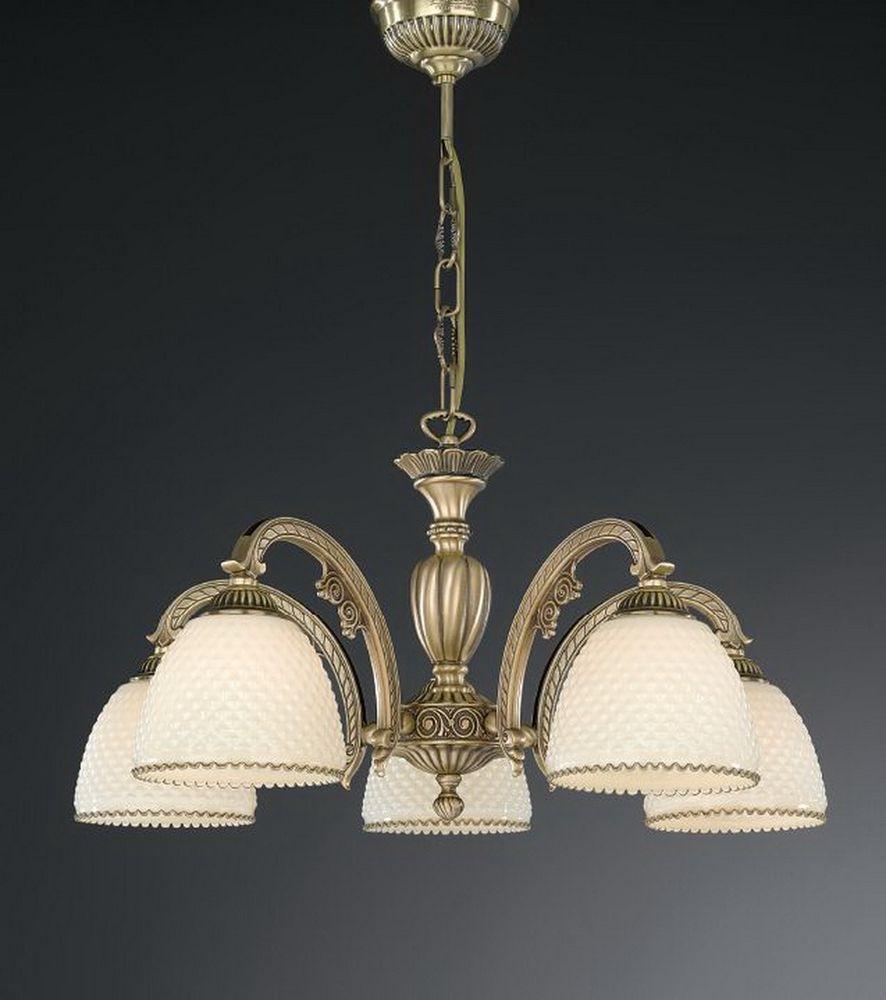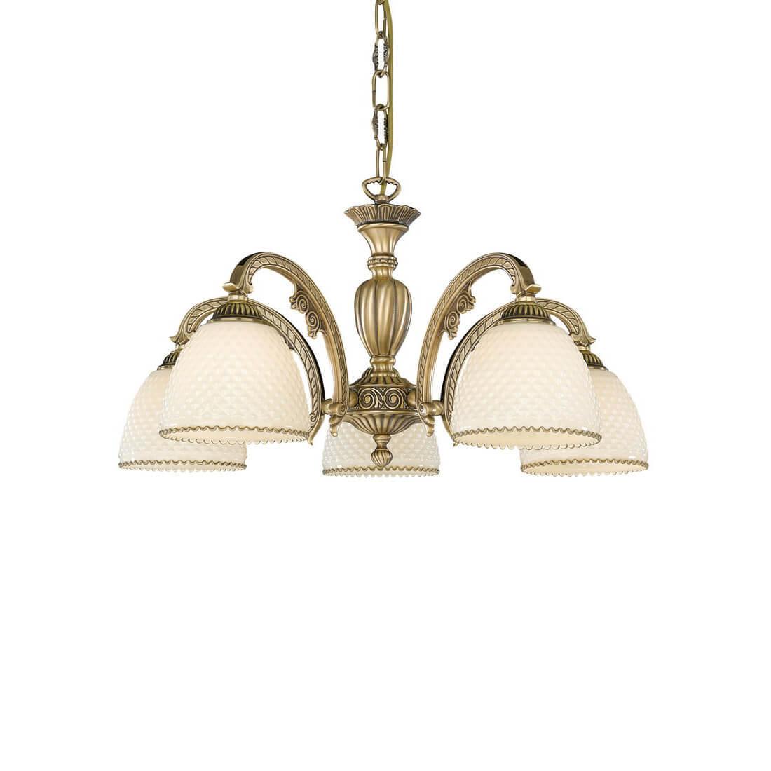 Подвесная люстра Reccagni Angelo L 7005/5 Итальянского производсва – уникальное сочетание высокого качества и удивительных фактур. Этот светильник Классического стиля хорошо подойдет Для гостиной и придаст помещению мягкий и приятный свет. Плафоны белые из стекла. Арматура бронза из металла. Кол-во ламп - 5шт. Общая мощность 300W