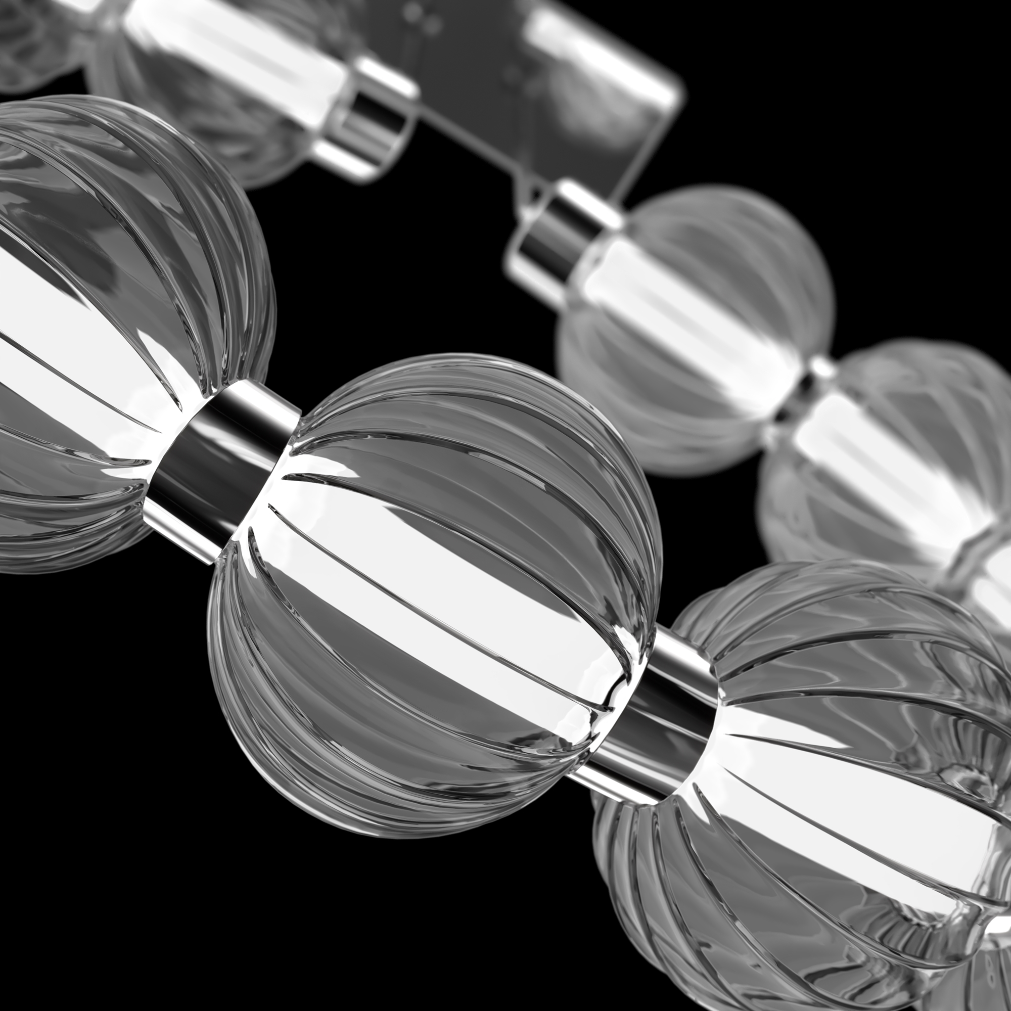 Этнические силуэты традиционных африканских украшений, наделенных тайным смыслом, легли в основу дизайна серии Amulet. Символика оберега, приносящего удачу и являющегося защитником дома, органично укладывается в канву современных интерьерных трендов, что подтверждают несколько международных премий. Акцентные декоративные элементы в виде рельефных сфер выполнены из литого стекла. Декор добавляет композиции визуальной легкости. Источник света – светодиодная лента – заключена в матовый акриловый рассеиватель. Такое решение обеспечивает мягкое освещение, а температура 4000К, близкая к дневному свету, идеальна для повседневной жизни. Серия включает подвесные светильники, высота которых регулируется при помощи тросов, а также настольную лампу.