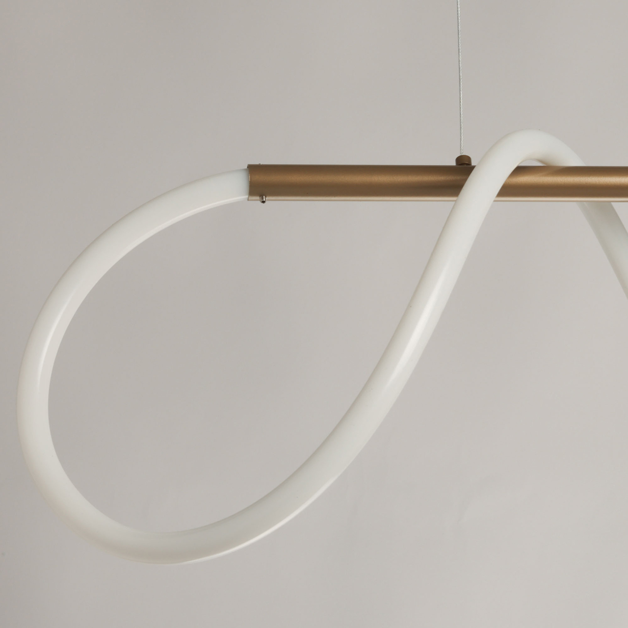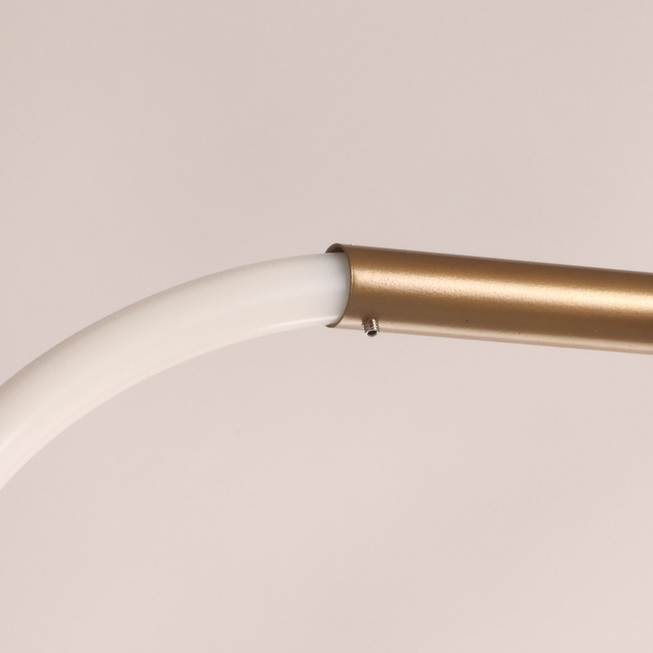 Металлическое основание светильника окрашено в цвет перламутрового золота, матировано. Гибкий плафон выполнен из белого матового силикона.