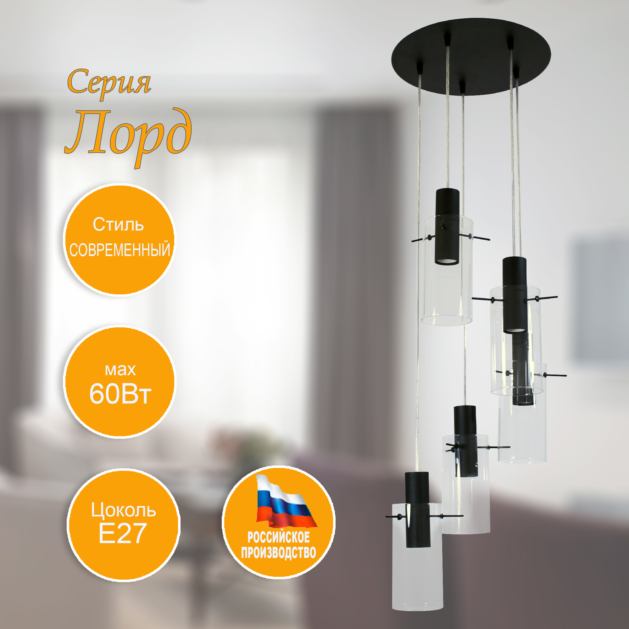 - Цвет плафонов: Прозрачный