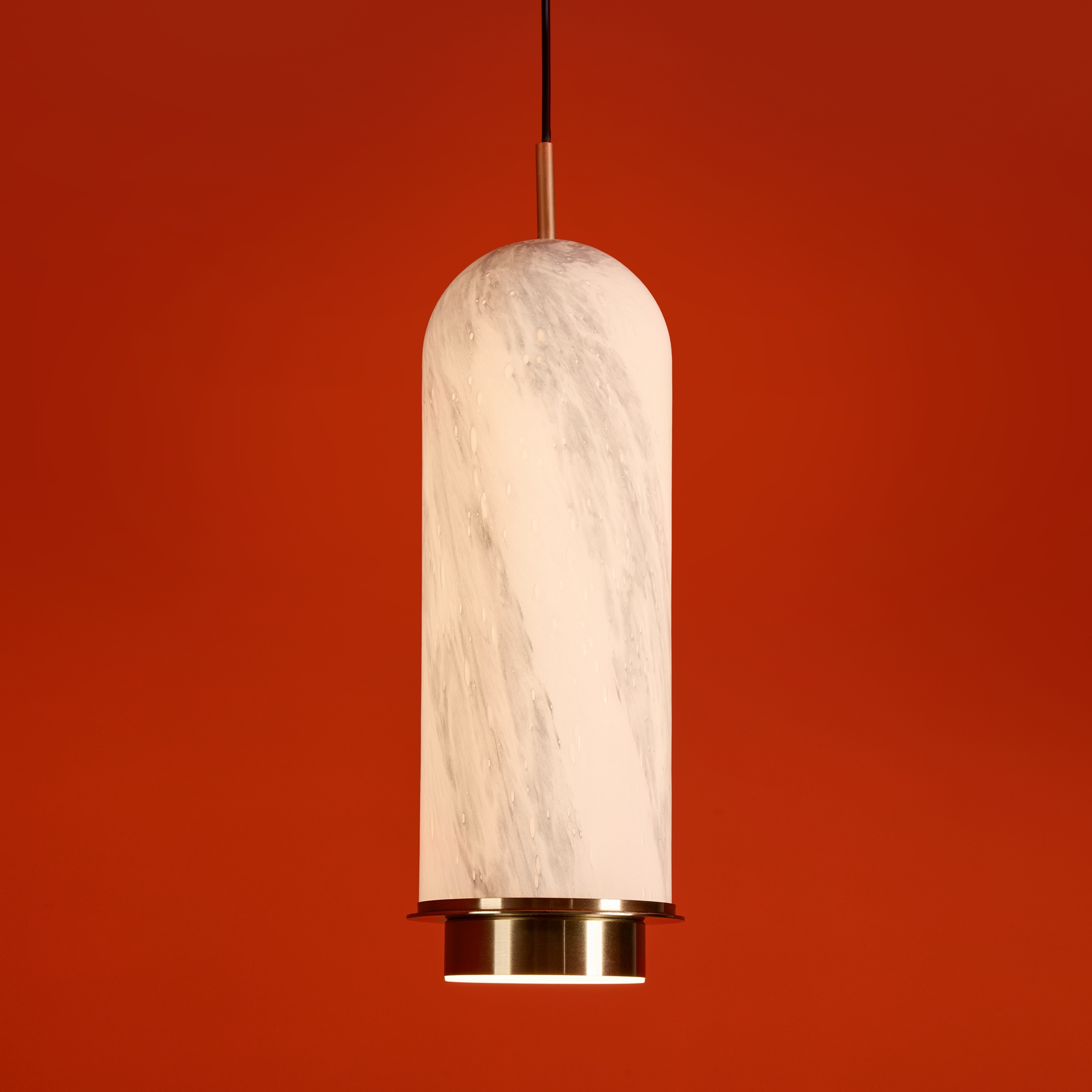 Арматура — металл. Стеклянные плафоны с имитацией мрамора и полосками в ретро-стиле. Интегрированный LED источник света 2700К, угол рассеивания 360°. Высота регулируется.