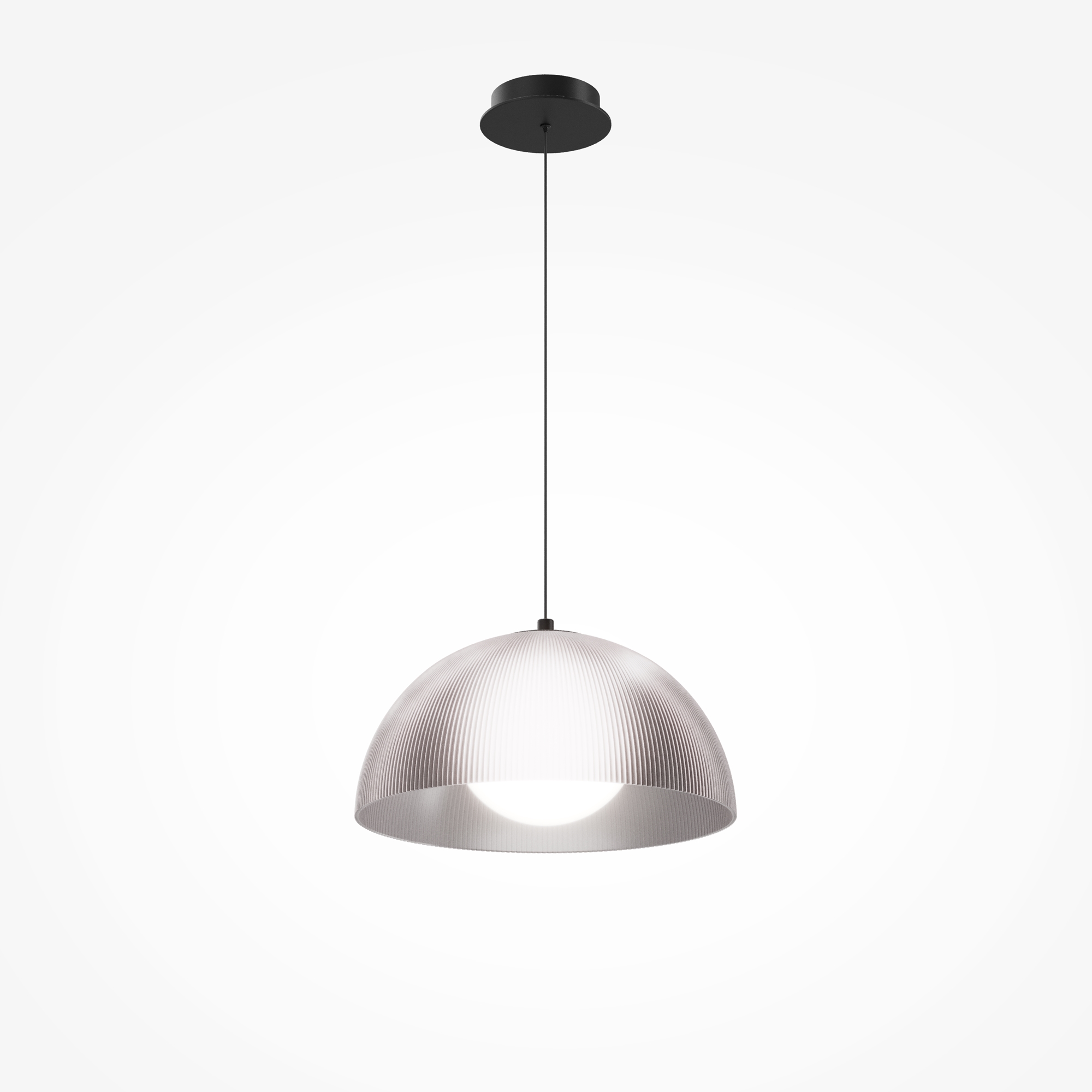 В серии представлены подвесные светильники двух диаметров абажура: 400мм и 600мм. Абажур из рельефного полупрозрачного акрила дымчатого цвета. Встроенный LED-источник с цветовой температурой 3000K. Свет мягко рассеивается матовым акрилом сферической формы. Высокий индекс цветопередачи CRI 90. Арматура из металла с черным покрытием "сэнди". Длина провода регулируется до 3000 мм. Предназначены для основного рассеянного освещения. Универсальное применение в жилых и коммерческих интерьерах.