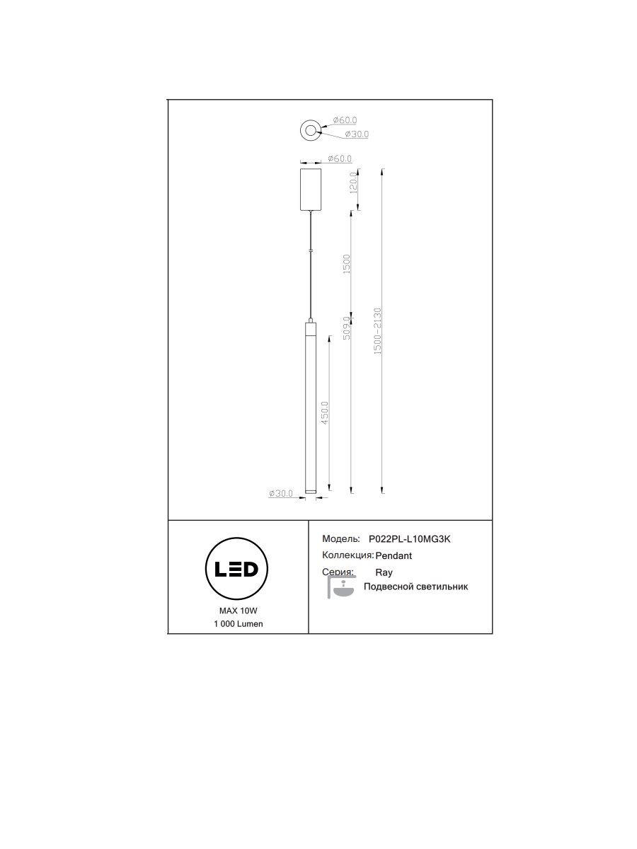 Данную модель P022PL-L10MG3K с быстрой доставкой спешите купить по цене 10 590 ₽ в магазине 220svet.ru