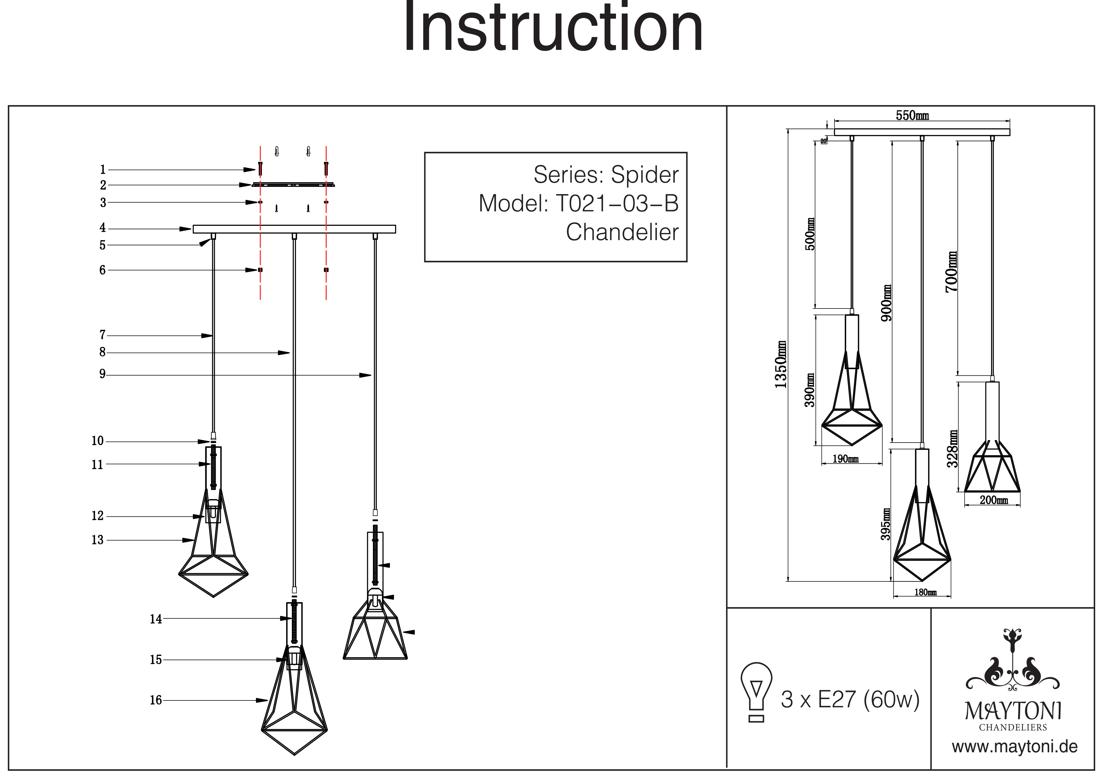 Купить "Подвесной светильник Maytoni Spider T021-03-B"
