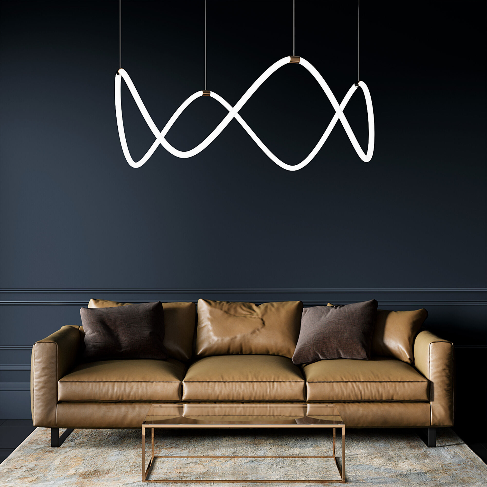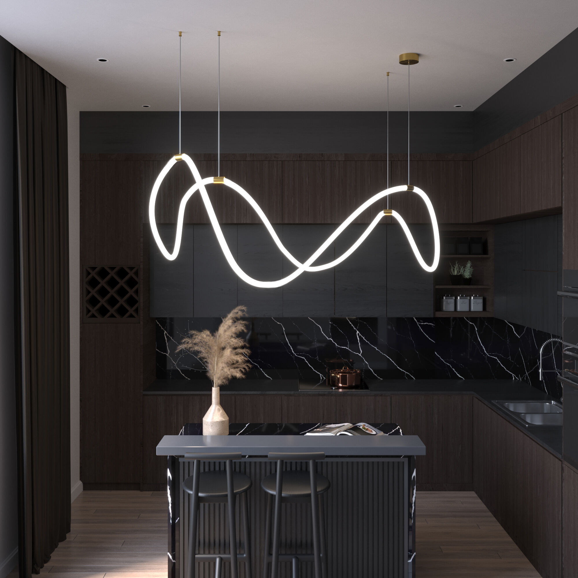 Необычная люстра из гибкого неона Full Light с пультом управления способна в корне изменить привычное восприятие интерьера. Благодаря гибкости неон можно расположить совершенно в разных вариациях.