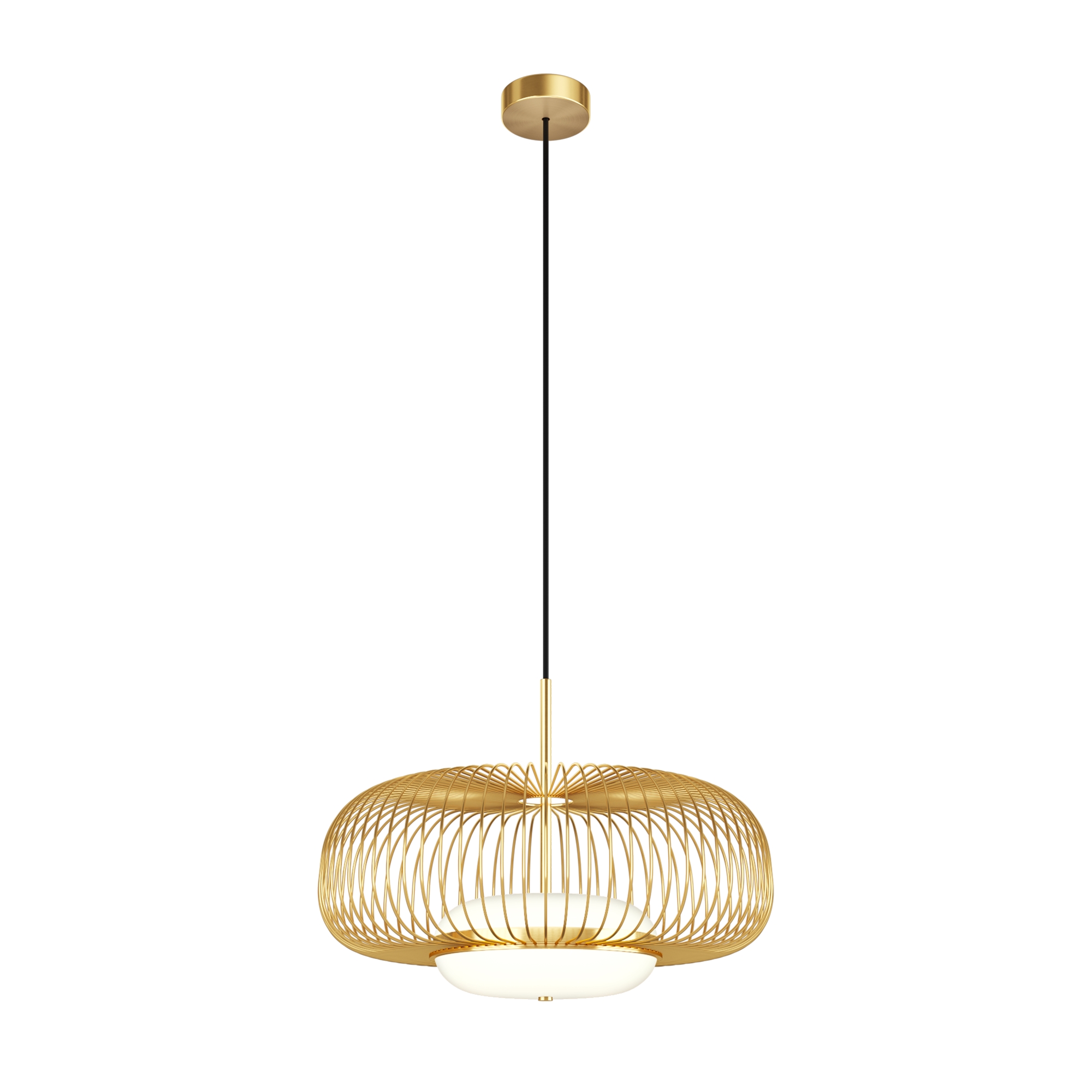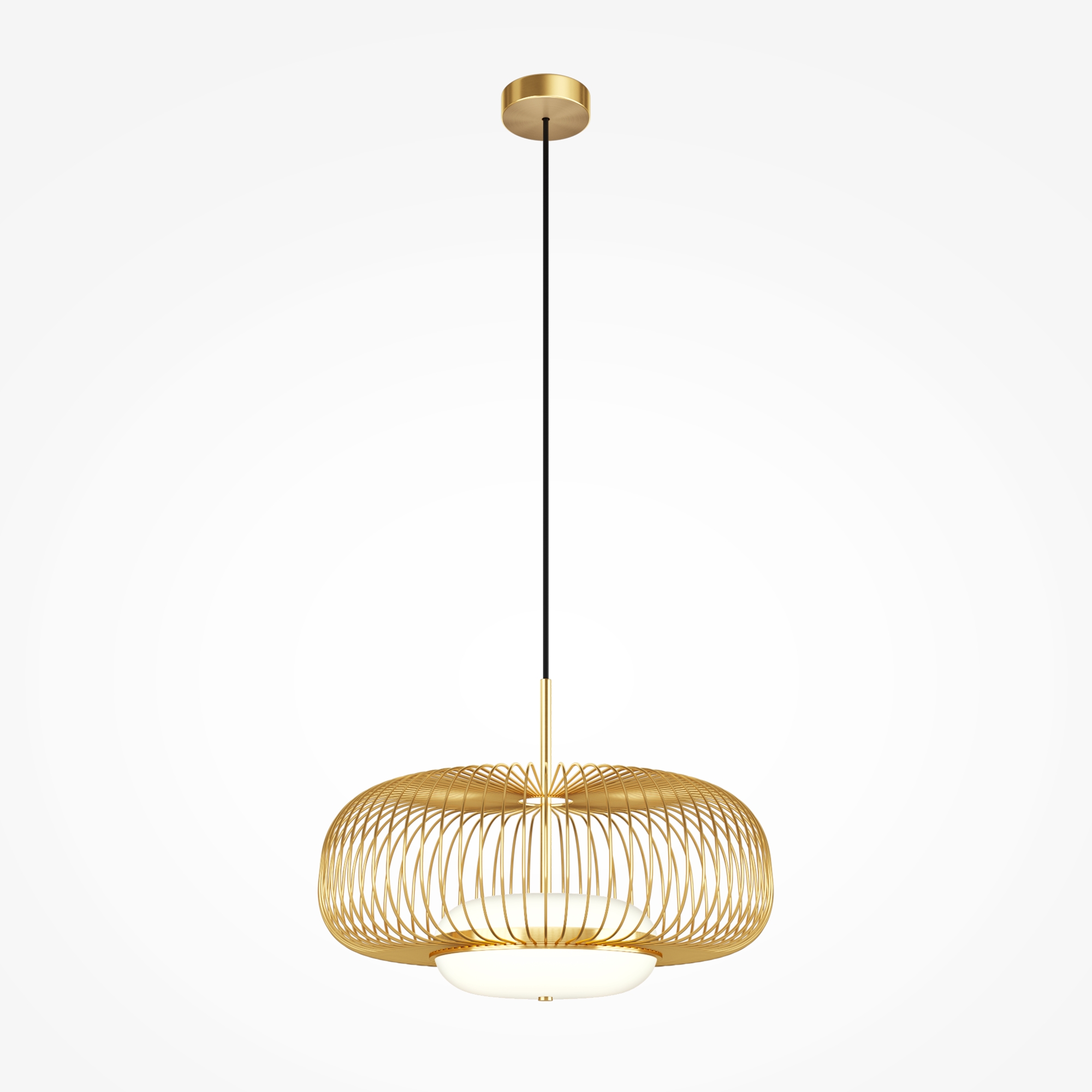 Цвет арматуры — латунь. Материал арматуры — металл. Абажур — каркас из проволоки, стекло. Оригинальный дизайн с эффектом левитации. Стеклянный рассеиватель со специальным выступом для крепления проволочного плафона. Два типа подвесных светильников: компактные со сменными лампами и крупный с LED-модулем для двунаправленного освещения. Провод длиной 3 метра для высоких потолков. Регулируемая высота подвеса. Универсальный дизайн для неоклассики, эклектики и фьюжн.