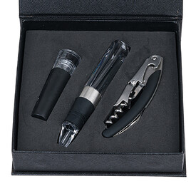 Подарочный набор из 3-х барных аксессуаров (аэратор для вина, штопор, винная пробка) HomeFeel