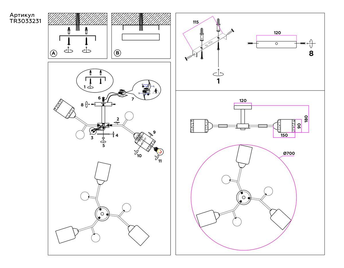 - Место установки: на потолок
