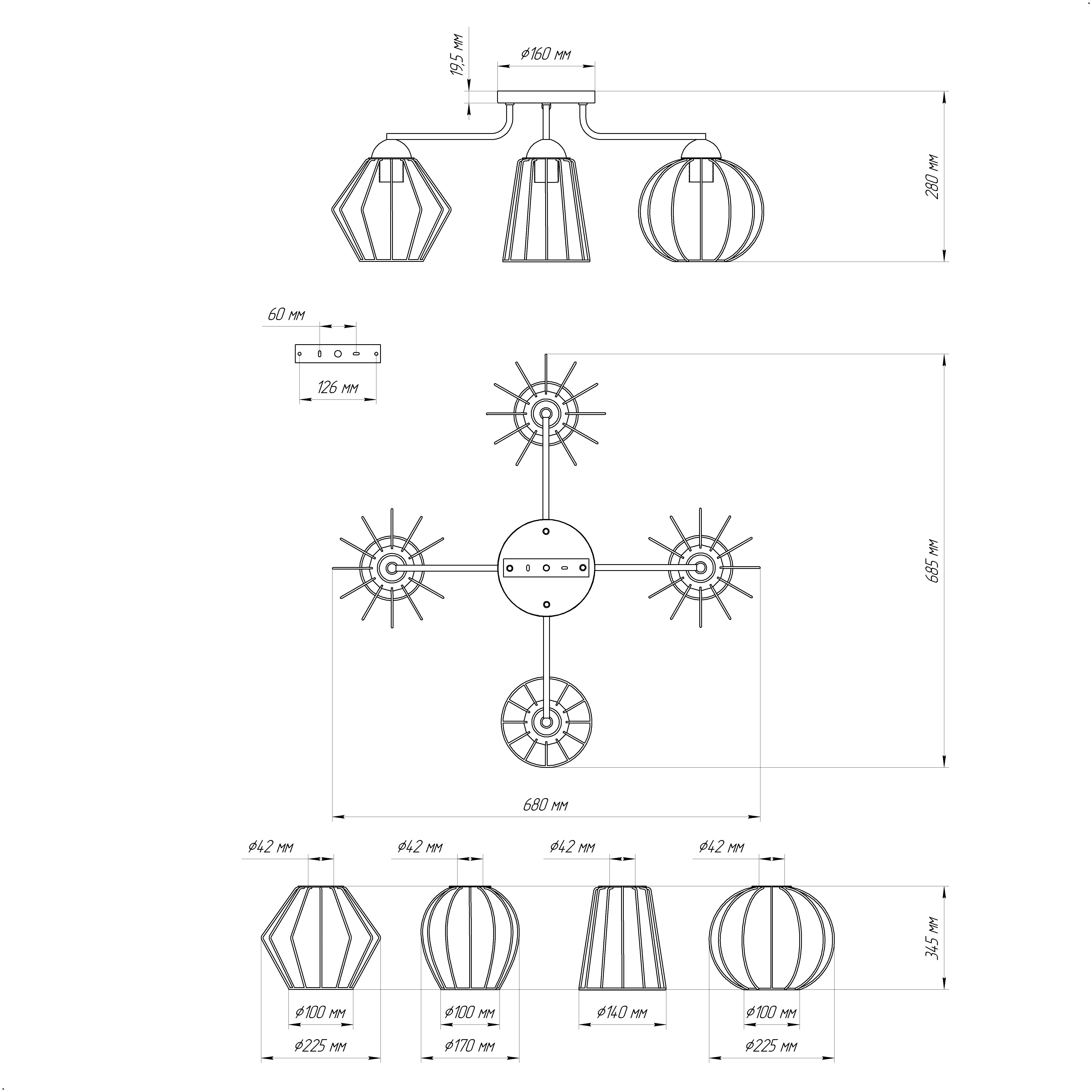 - Цвет плафонов: Черный
