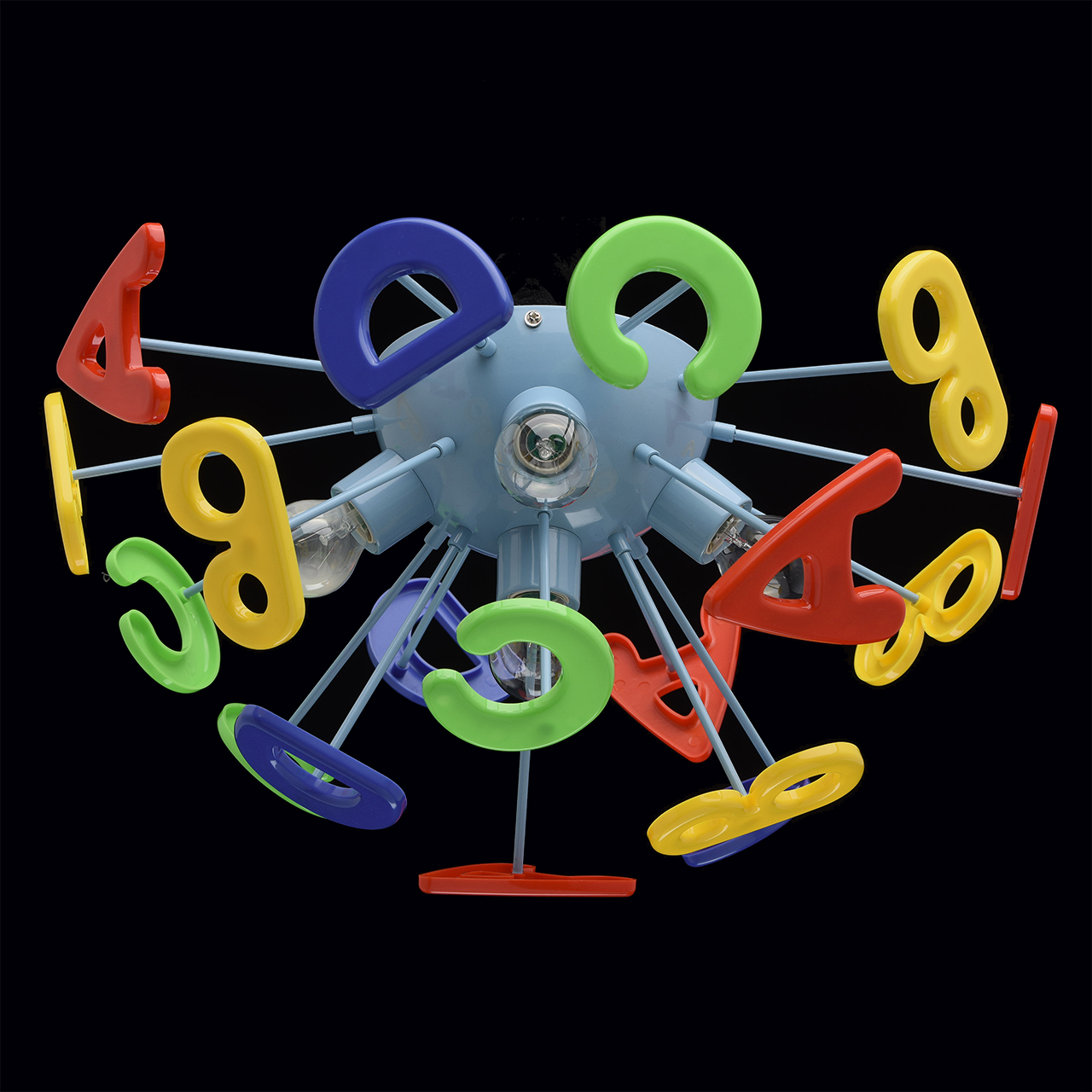 Основание светильника выполнено из сплава металла и окрашено в синий цвет. Светильник декорирован латинскими буквами из высококачественного акрила, окрашенного в разные цвета.